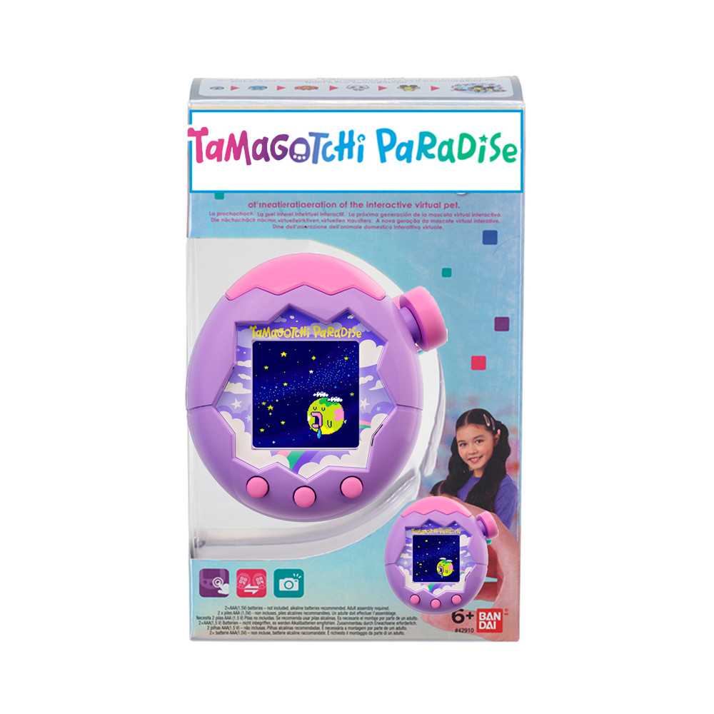 | La boîte contient | Appareil Tamagotchi Paradise Sky en boîte vitrine. Piles non fournies. |