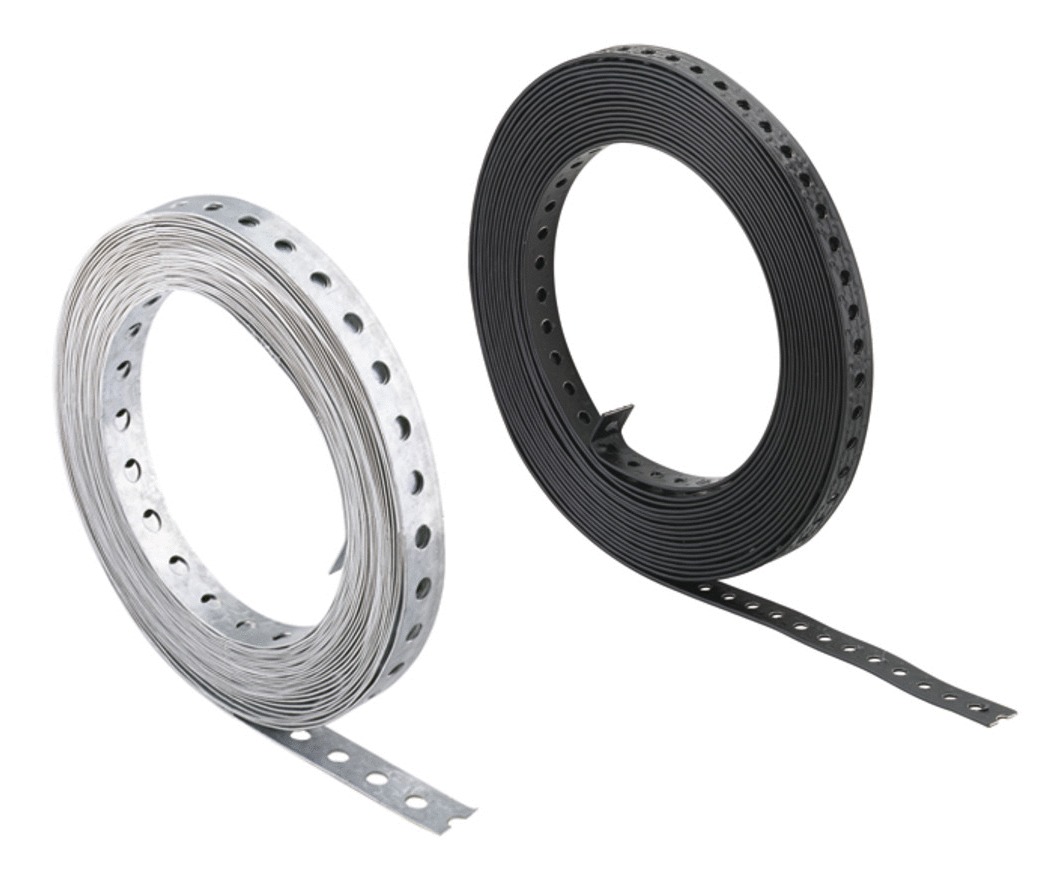 - Bande métallique perforée pour un montage simple, en version électrozinguée LBV ou plastifiée LBK