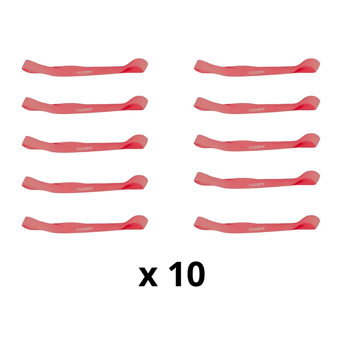 Les bandes de résistance Toorx Resistance Bands sont fabriquées en caoutchouc latex robuste et mesurent chacune 30 cm de long. Parfait pour réaliser tous les exercices de fitness. Veuillez noter : cet article est proposé en paquets de 10 par couleur. Couleurs disponibles : Jaune - résistance à la lumière Vert - résistance moyenne Rouge : forte résistance