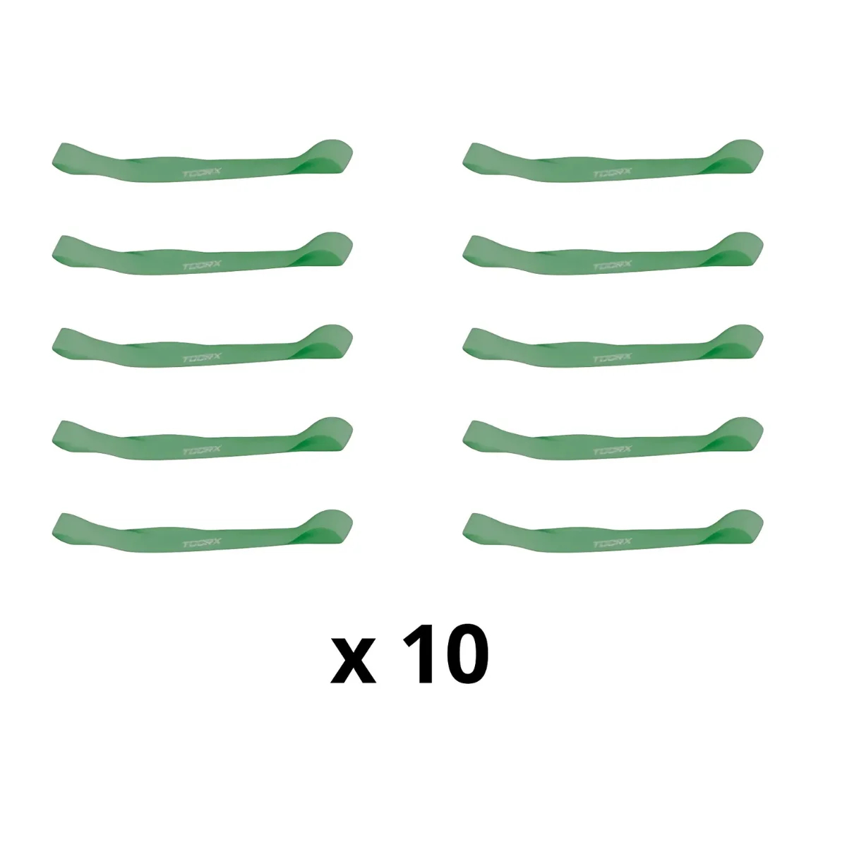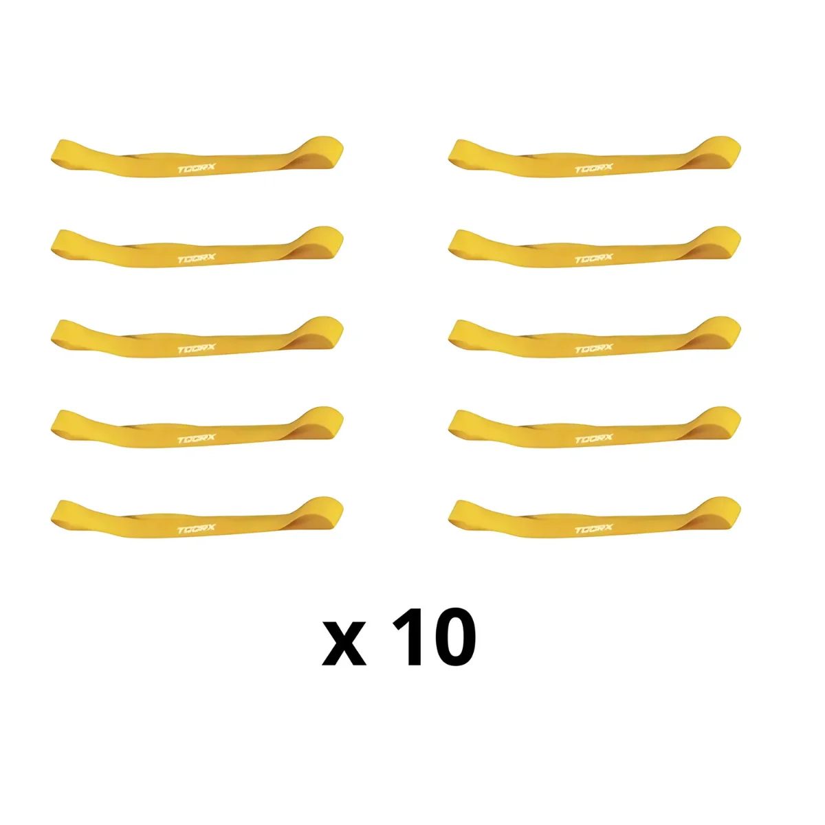 Les bandes de résistance Toorx Resistance Bands sont fabriquées en caoutchouc latex robuste et mesurent chacune 30 cm de long. Parfait pour réaliser tous les exercices de fitness. Veuillez noter : cet article est proposé en paquets de 10 par couleur. Couleurs disponibles : Jaune - résistance à la lumière Vert - résistance moyenne Rouge : forte résistance