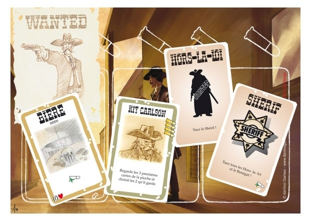 Retrouvez l’ambiance des Western dans un jeu endiablé. Hors-la-loi, tuez le Shérif, adjoints anonymes, sauvez-le, renégats, tirez sur tout le monde !