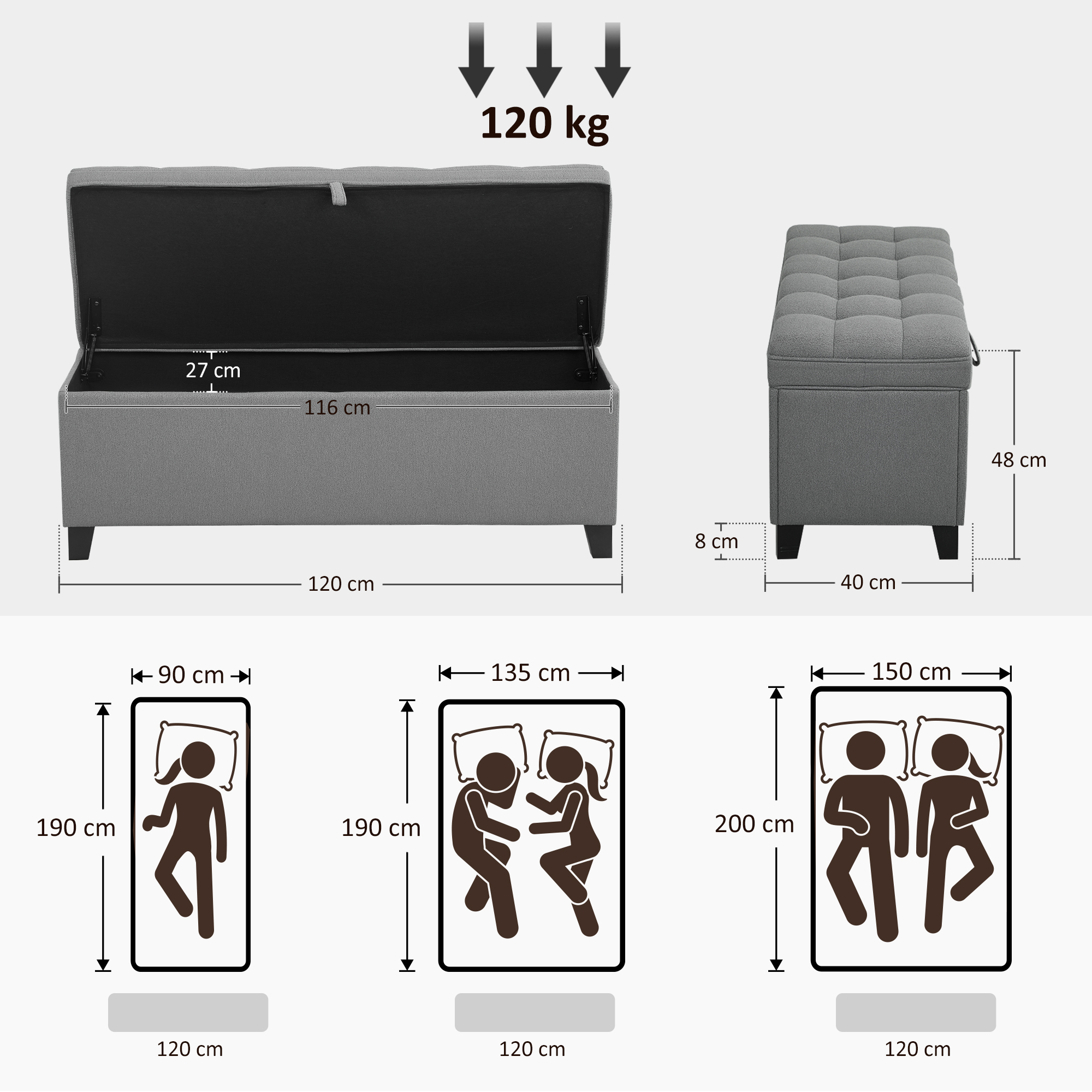 Découvrez le banc de rangement HOMCOM, alliant style et fonctionnalité avec un espace de 112 litres et doubles charnières. Son design capitonné et son revêtement effet lin s'harmonisent avec tout décor. Idéal comme banc à chaussures ou au pied du lit, il ajoute élégance et organisation à votre espace.