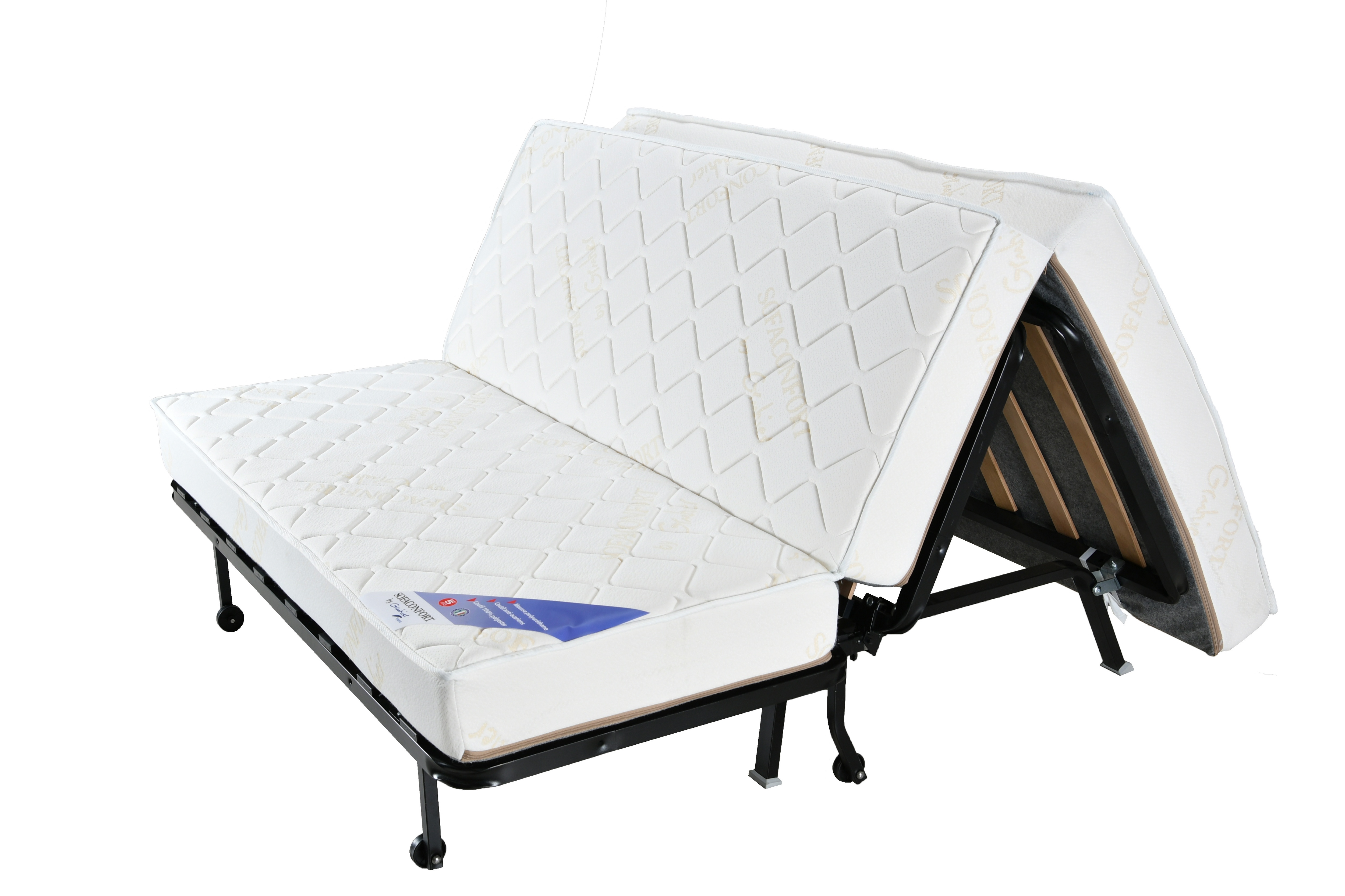 Découvrez la Banquette Accordéon BZ Bounty, une solution pratique et stylée pour un couchage d'appoint. Déclinée en de multiples coloris, des plus sobres aux plus colorés, elle est idéale pour les petits espaces et les petits budgets. Son design sobre s'intègre parfaitement à tous les styles d'intérieur, tandis que ses deux coussins peuvent être utilisés comme accoudoirs ou cale-reins pour plus de liberté. Caractéristiques principales : Dimensions du couchage : 140 x 190 cm Dimensions : L 143 x P 97 x H 89 cm Hauteur d'assise : 46 cm Profondeur d'assise : 55 cm Livrée à monter en 1 colis : Dimensions : 143 x 40 x 65 cm, Poids : 34 kg Temps de montage : 30 minutes (2 personnes conseillées) Revêtement et confort : Tissu : 100 % coton, 200 g/m² Ouatinage : 350 g/m², doublure intissé Maintien : Fermetures à glissière avec ganse de protection Coussins déco : 2 petits coussins déhoussables inclus, garnis de mélange de flocons de mousse polyéther et de fibre polyester Structure : Cadre : Acier laqué époxy noir Lattes : Cadres à lattes multiplis, encadrement métallique, 24 lattes cintrées naturelles (53 x 8 cm) parallèles au couchage Bois : Issu de forêts européennes Couchage : Matelas : BULTEX, bi-bloc, mousse polyuréthane Haute Résilience (HR), densité 32 kg/m³, coutil stretch Confort : Occasionnel Épaisseur du matelas : 12 cm Options : Tiroir de rangement : Disponible en option, monté sur 4 roulettes, panneaux de particules mélaminés 16 mm gris anthracite avec fond uni blanc (Dimensions : L 89,2 x P 59,5 x H 18 cm) Avantages : Design polyvalent : S'intègre à tous les styles d'intérieur Économie d'espace : Idéal pour les petits espaces Fabrication respectueuse de l'environnement : Bois issu de forêts gérées durablement Engagement qualité : Fabrication française, garantie 5 ans, fabricant engagé dans une démarche RSE Choisissez la Banquette Accordéon BZ Bounty pour un meuble pratique, économique et stylé, parfait pour tous les espaces de vie. Profitez d'un confort optimal et d'un style moderne avec un choix de coloris variés pour répondre à toutes vos envies. Option(s) sélectionnée(s) : - Couleur : Bleu turquoise - Coffre de rangement : Avec rangement