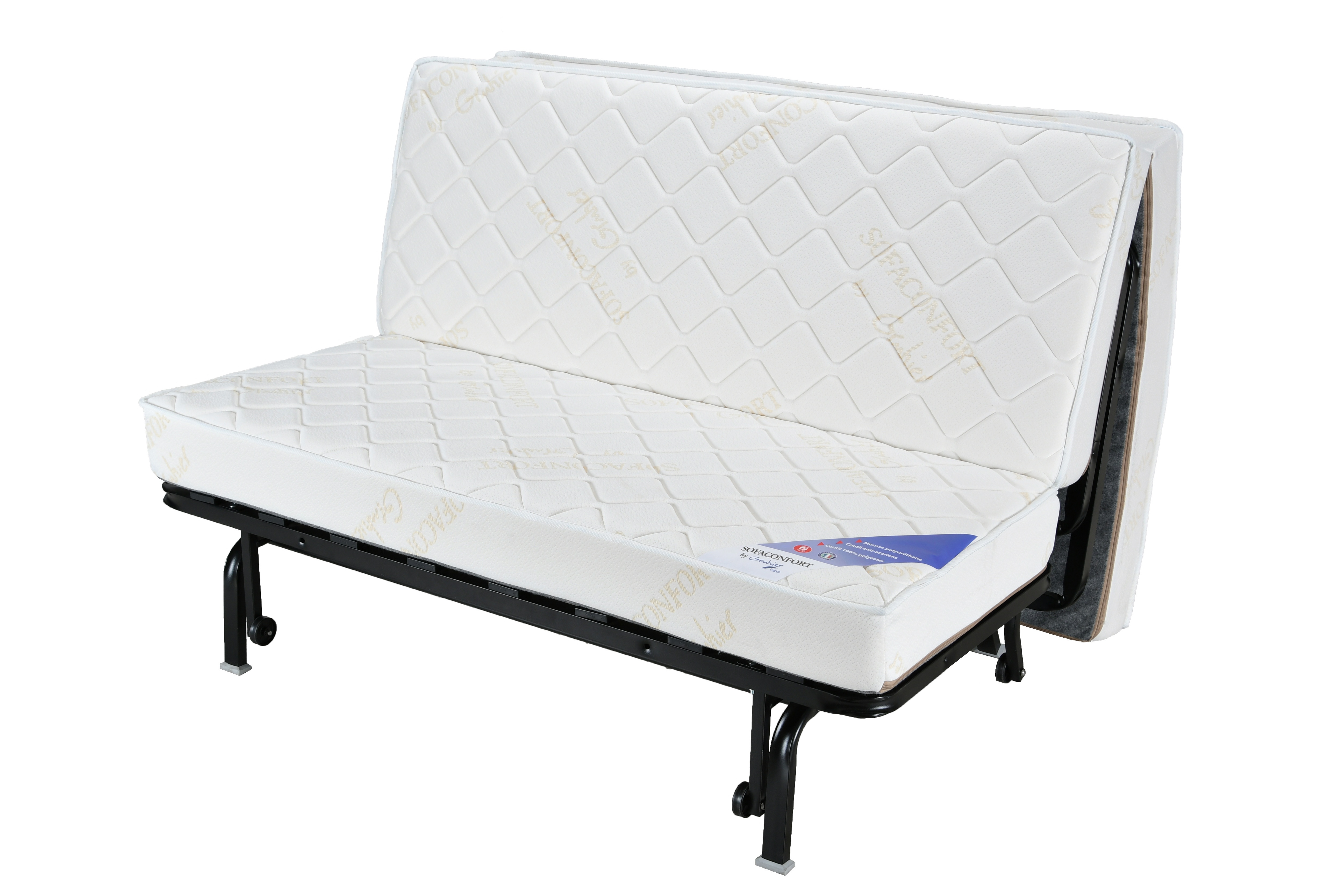 Découvrez la Banquette Accordéon BZ Bounty, une solution pratique et stylée pour un couchage d'appoint. Déclinée en de multiples coloris, des plus sobres aux plus colorés, elle est idéale pour les petits espaces et les petits budgets. Son design sobre s'intègre parfaitement à tous les styles d'intérieur, tandis que ses deux coussins peuvent être utilisés comme accoudoirs ou cale-reins pour plus de liberté. Caractéristiques principales : Dimensions du couchage : 140 x 190 cm Dimensions : L 143 x P 97 x H 89 cm Hauteur d'assise : 46 cm Profondeur d'assise : 55 cm Livrée à monter en 1 colis : Dimensions : 143 x 40 x 65 cm, Poids : 34 kg Temps de montage : 30 minutes (2 personnes conseillées) Revêtement et confort : Tissu : 100 % coton, 200 g/m² Ouatinage : 350 g/m², doublure intissé Maintien : Fermetures à glissière avec ganse de protection Coussins déco : 2 petits coussins déhoussables inclus, garnis de mélange de flocons de mousse polyéther et de fibre polyester Structure : Cadre : Acier laqué époxy noir Lattes : Cadres à lattes multiplis, encadrement métallique, 24 lattes cintrées naturelles (53 x 8 cm) parallèles au couchage Bois : Issu de forêts européennes Couchage : Matelas : BULTEX, bi-bloc, mousse polyuréthane Haute Résilience (HR), densité 32 kg/m³, coutil stretch Confort : Occasionnel Épaisseur du matelas : 12 cm Options : Tiroir de rangement : Disponible en option, monté sur 4 roulettes, panneaux de particules mélaminés 16 mm gris anthracite avec fond uni blanc (Dimensions : L 89,2 x P 59,5 x H 18 cm) Avantages : Design polyvalent : S'intègre à tous les styles d'intérieur Économie d'espace : Idéal pour les petits espaces Fabrication respectueuse de l'environnement : Bois issu de forêts gérées durablement Engagement qualité : Fabrication française, garantie 5 ans, fabricant engagé dans une démarche RSE Choisissez la Banquette Accordéon BZ Bounty pour un meuble pratique, économique et stylé, parfait pour tous les espaces de vie. Profitez d'un confort optimal et d'un style moderne avec un choix de coloris variés pour répondre à toutes vos envies. Option(s) sélectionnée(s) : - Couleur : Rouge - Coffre de rangement : Avec rangement