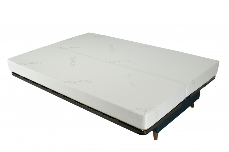 Découvrez notre banquette-lit clic-clac, idéale pour un couchage confortable de 130x190 cm. Disponible en plusieurs coloris, ce modèle est fabriqué en France et bénéficie d'une garantie de 5 ans. Caractéristiques Principales : Dimensions Couchage : 130 x 190 cm Dimensions Totales : L 193 x H 101 x P 95 cm Hauteur d'assise : 48 cm Profondeur d'assise : 58 cm Poids : 45 kg Volume : 0,9 m³ Confort et Qualité : Matelas : Bi-bloc BULTEX de 14 cm en mousse polyuréthane HR 32 kg/m³, coutil Stretch Cadre : Lattes multiplis cintrées ton naturel, 2 x 9 lattes, cadre en acier laqué époxy noir Structure : Acier laqué noir, peinture époxy Finitions : Housse de Recouvrement : Ouatinage 350 gr/m², doublure intissé blanc, maintien par élastique Tissu : 100% polyester Coussins : Paire de coussins déco déhoussables Pieds : En hêtre naturel Fonctionnalités : Coffre de Rangement : L 173 x H 18 x P 71 cm Livraison : À monter soi-même Avantages : Fabrication Française : Une qualité supérieure garantie Garantie : 5 ans Cette banquette-lit clic-clac allie praticité et confort avec un design élégant. Le matelas BULTEX de haute qualité offre un soutien optimal, tandis que le cadre à lattes et la structure robuste garantissent une durabilité exceptionnelle. Avec son coffre de rangement intégré, vous pouvez facilement ranger vos affaires pour un espace de vie ordonné. Ajoutez une touche de style et de confort à votre intérieur avec ce meuble polyvalent. Option(s) sélectionnée(s) : - Couleur : Marron clair