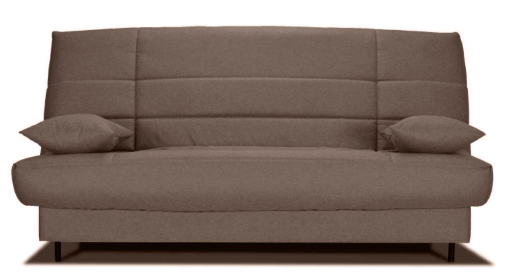 Banquette Clic-clac tissu 130x190 matelas Bultex 14cm avec rangement Zéa-Couleur Marron clair