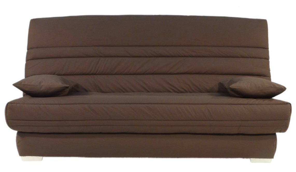Banquette Clic-clac tissu 130x190 matelas Sofaconfort 14cm avec rangement Sofia-Couleur Marron