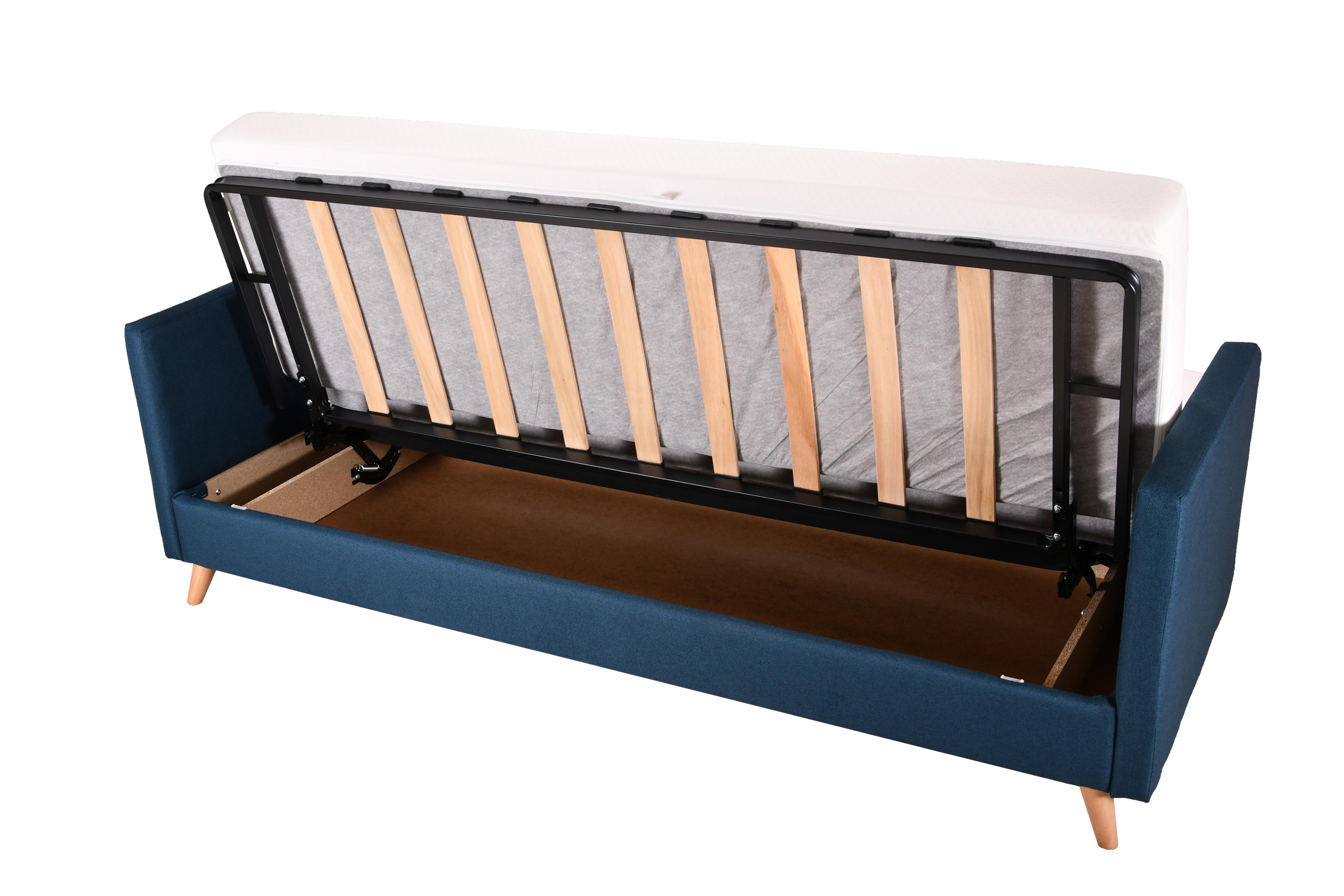 Banquette Clic-clac tissu 130x190 matelas Starbed 13cm avec rangement Soly-Couleur Bleu nuit