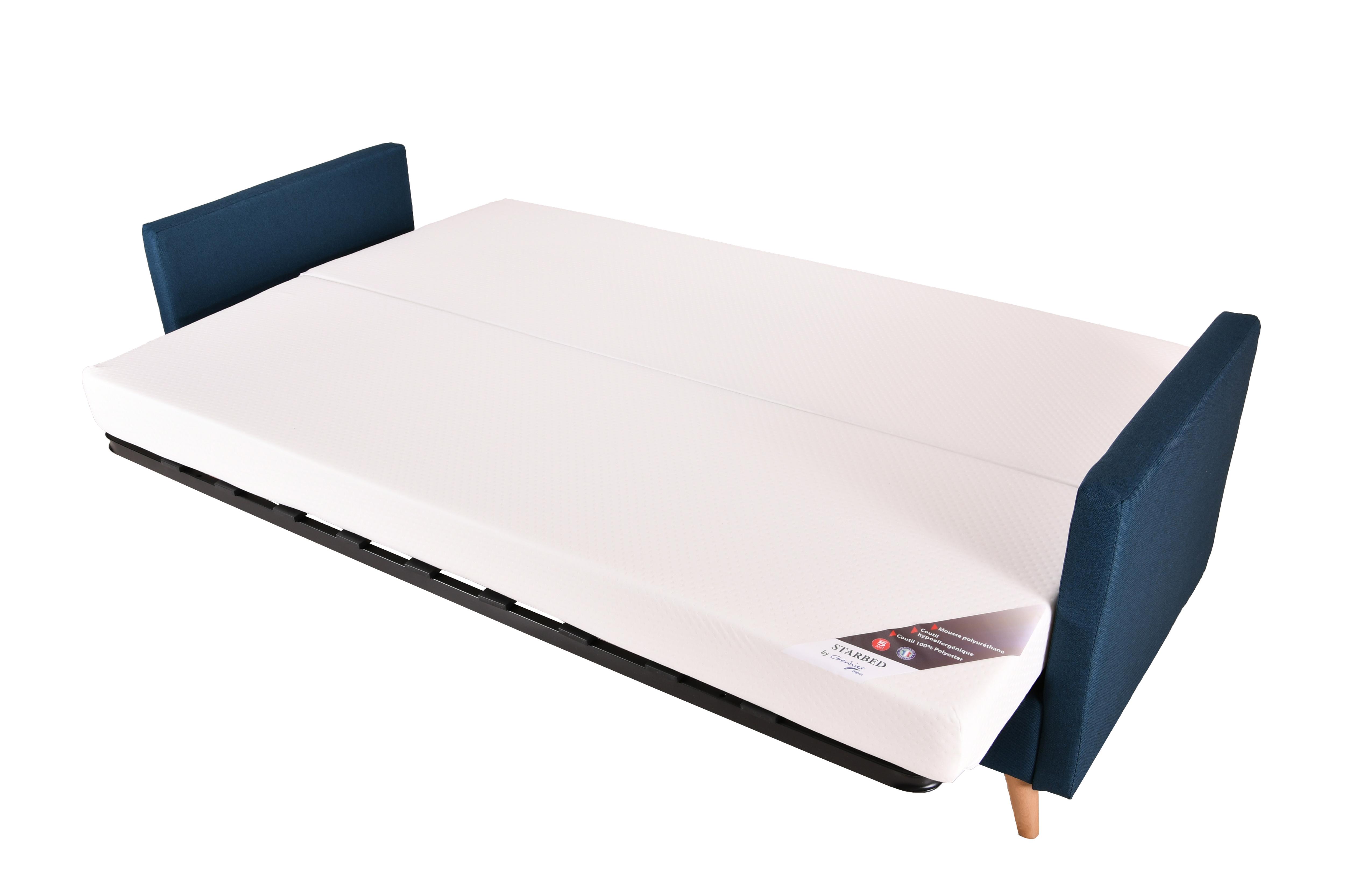 Découvrez la banquette clic-clac Soly, parfaite pour un usage quotidien avec son matelas en mousse de fabrication française et ses finitions soignées. Disponible en plusieurs coloris unis, ce modèle offre un confort optimal et une grande praticité. Caractéristiques Principales : Matelas : 13 cm bi-bloc STARBED, coutil Stretch, mousse HD 26 kg/m³ Couchage : 130 x 190 cm Dimensions Totales : L 210 x H 101 x P 95 cm Hauteur d'assise : 48 cm Profondeur d'assise : 58 cm Poids : 62 kg Volume : 0,9 m³ Coffre de Rangement : L 173 x H 18 x P 71 cm Sommier : Cadres à lattes multiplis cintrées, 2 x 9 lattes ton naturel, cadre en acier laqué époxy noir Structure : Acier laqué noir, peinture époxy Housse de Recouvrement : Ouatinage 350 gr/m², doublure intissé, maintien par fermetures à glissières Tissu : 100% polyester Pieds : En bois hêtre naturel Avantages : 2 petits coussins pouvant servir d’accoudoirs ou de cale-reins Paire de coussins déco déhoussables Fabrication Française : Une qualité supérieure garantie Garantie : 5 ans Livraison : À monter soi-même, pour une installation facile et rapide Cette banquette clic-clac allie confort, design et fonctionnalité. Ses coussins polyvalents et son coffre de rangement en font un choix idéal pour tout intérieur moderne. Profitez de la robustesse et de l’élégance de ce meuble conçu pour durer, tout en ajoutant une touche de style à votre espace de vie. Option(s) sélectionnée(s) : - Couleur : Gris clair chiné