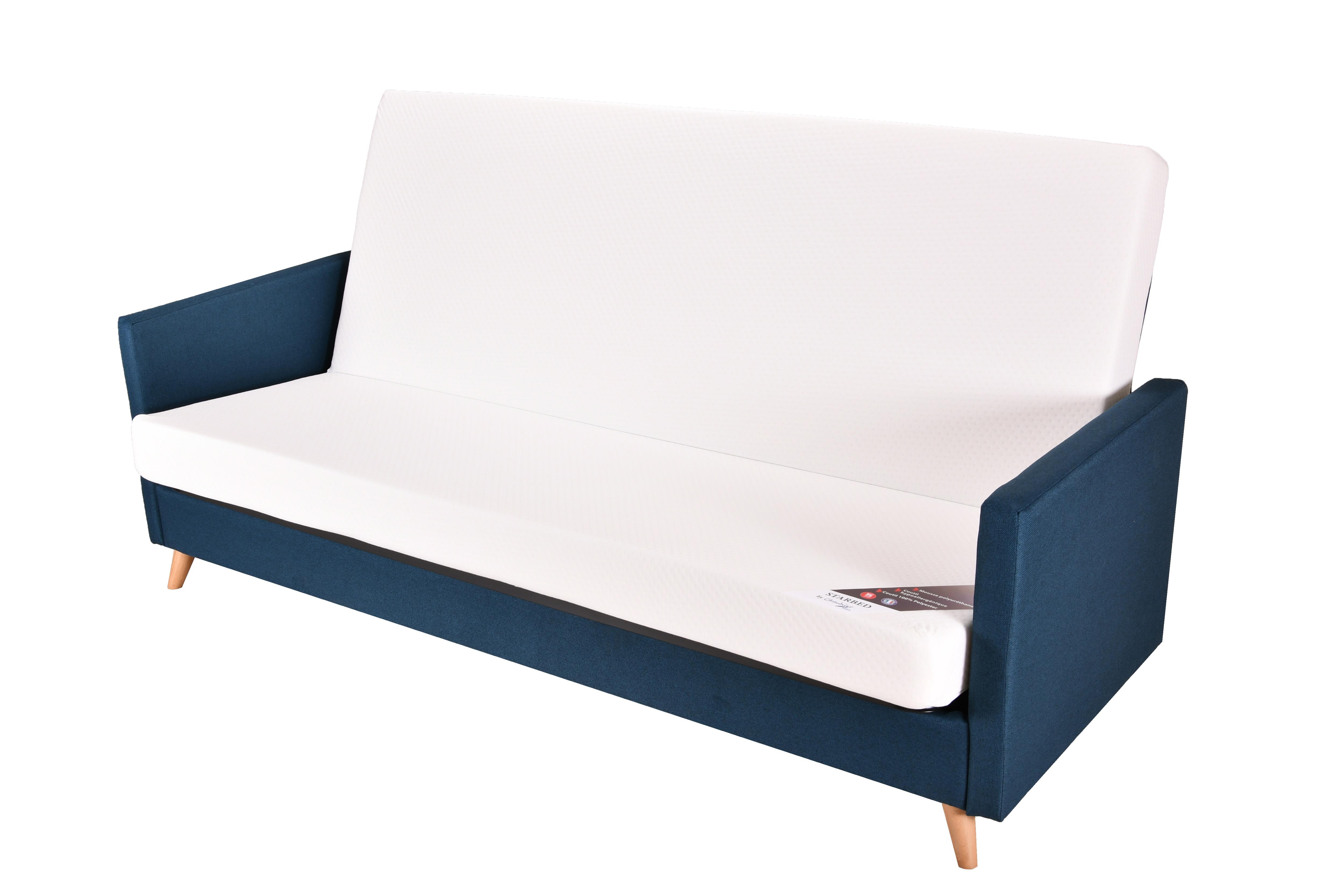 Découvrez la banquette clic-clac Soly, parfaite pour un usage quotidien avec son matelas en mousse de fabrication française et ses finitions soignées. Disponible en plusieurs coloris unis, ce modèle offre un confort optimal et une grande praticité. Caractéristiques Principales : Matelas : 13 cm bi-bloc STARBED, coutil Stretch, mousse HD 26 kg/m³ Couchage : 130 x 190 cm Dimensions Totales : L 210 x H 101 x P 95 cm Hauteur d'assise : 48 cm Profondeur d'assise : 58 cm Poids : 62 kg Volume : 0,9 m³ Coffre de Rangement : L 173 x H 18 x P 71 cm Sommier : Cadres à lattes multiplis cintrées, 2 x 9 lattes ton naturel, cadre en acier laqué époxy noir Structure : Acier laqué noir, peinture époxy Housse de Recouvrement : Ouatinage 350 gr/m², doublure intissé, maintien par fermetures à glissières Tissu : 100% polyester Pieds : En bois hêtre naturel Avantages : 2 petits coussins pouvant servir d’accoudoirs ou de cale-reins Paire de coussins déco déhoussables Fabrication Française : Une qualité supérieure garantie Garantie : 5 ans Livraison : À monter soi-même, pour une installation facile et rapide Cette banquette clic-clac allie confort, design et fonctionnalité. Ses coussins polyvalents et son coffre de rangement en font un choix idéal pour tout intérieur moderne. Profitez de la robustesse et de l’élégance de ce meuble conçu pour durer, tout en ajoutant une touche de style à votre espace de vie. Option(s) sélectionnée(s) : - Couleur : Gris Souris