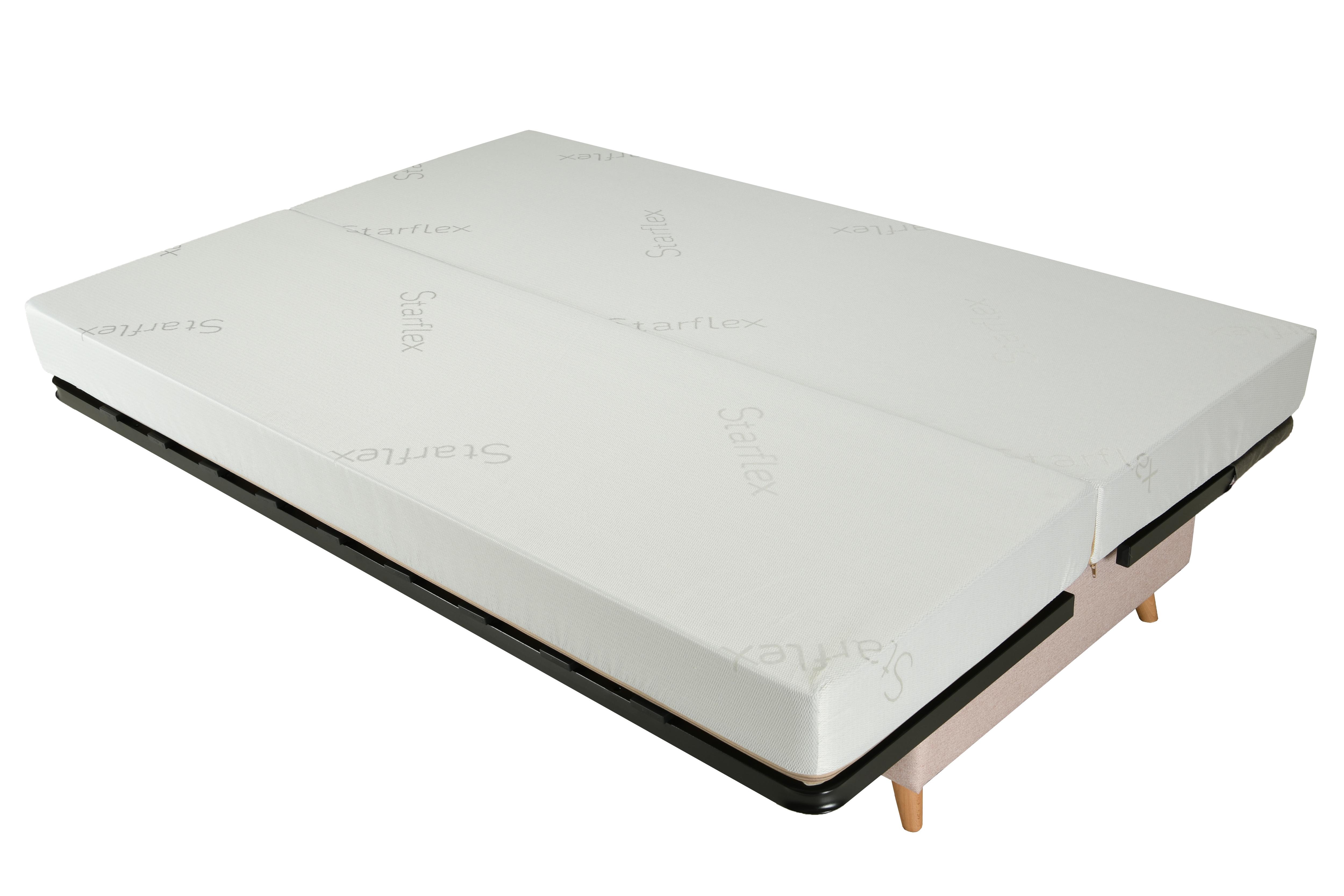 Banquette Clic-clac tissu 130x190 matelas Starflex 13cm avec rangement Kalix-Couleur Jaune ambre