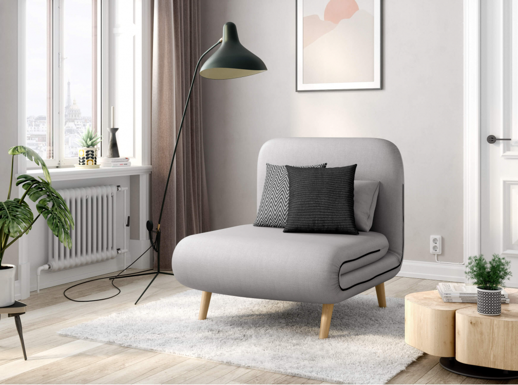 | Plus produit | Fauteuil convertible en lit | Pratique et peu encombrant | Revêtement en tissu |