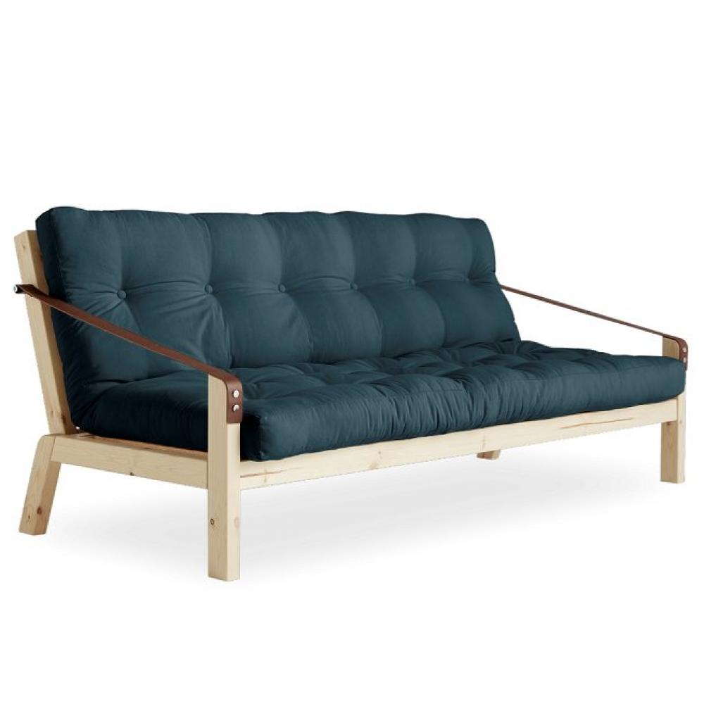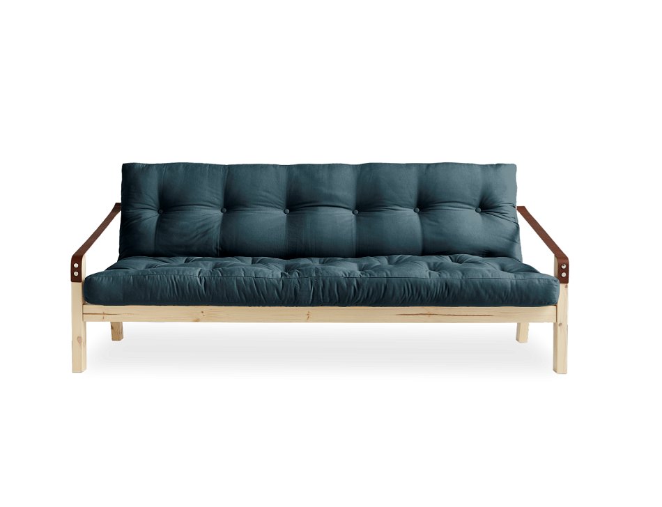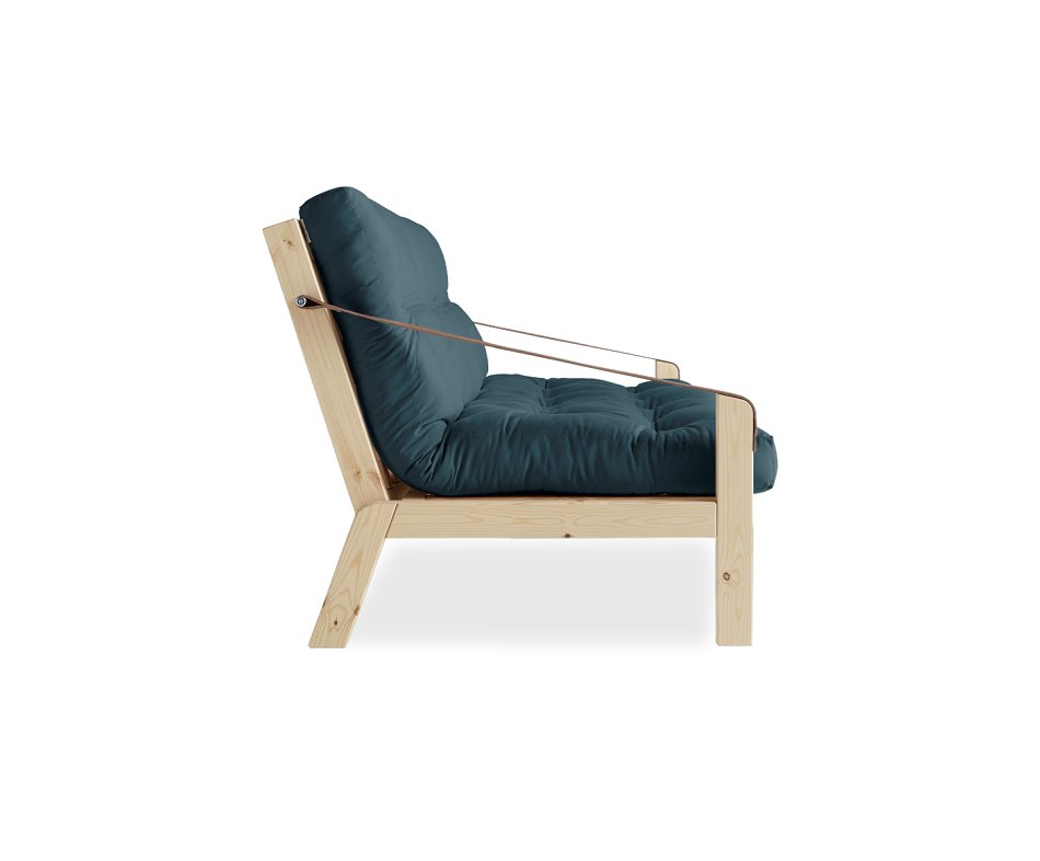 Banquette futon POETRY en pin massif coloris bleu pétrole couchage 130 x 190 cm.