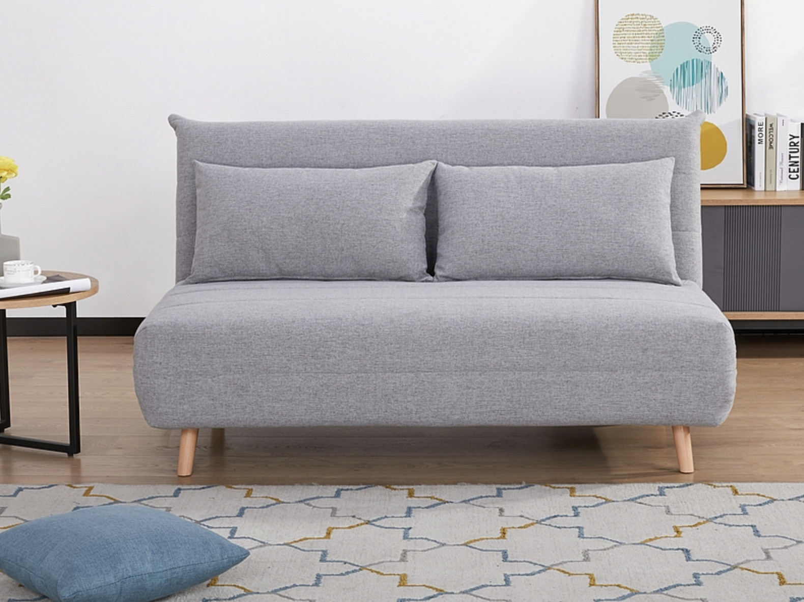 Banquette lit convertible 2 places tissu Kikou 147cm-Couleur Gris clair