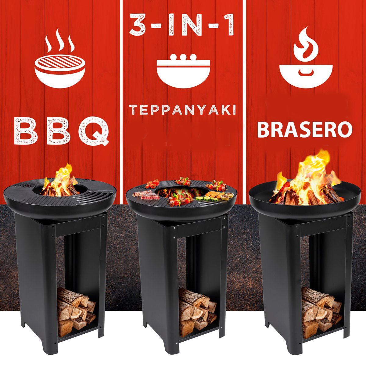 | Plus produit | Barbecue à bois multiusages : barbecue, plaque de cuisson grill Teppanyaki ou Brasero |