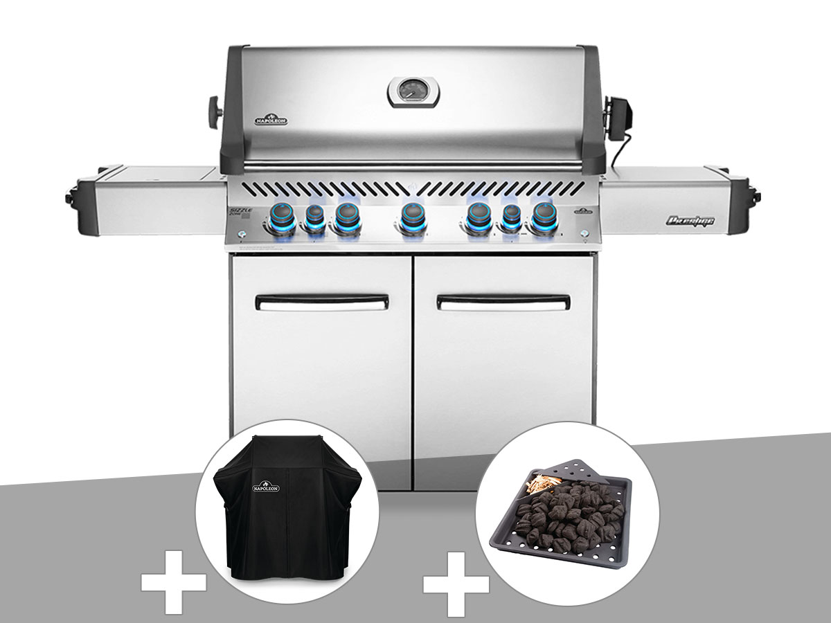 Barbecue à gaz Napoleon Prestige 665 inox + Housse de protection + Plateau charbon