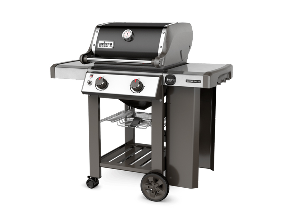 Le barbecue à gaz Genesis II E-210 GBS par Weber pour des grillades réussies à tous les coups !Compact pour les petites terrasses ou les balcons, il est tout de même suffisamment grand pour cuire tout un repas pour 3 à 4 personnes.Son système de grillades hautes performances GS4 vous garantit une cuisson optimale avec ce bon goût de fumé : Allumage infinity, Brûleurs hautes performances, Barres flavorizers émaillées, Système de gestion des graisses.Élégant avec son chariot ouvert, ce barbecue à gaz Weber est pratique et fonctionnel, grâce à ses nombreux équipements :• 2 brûleurs hautes performances en inox 7,62 kw• Couvercle émaillé• Grille de cuisson en fonte d'acier émaillé Gourmet BBQ System• Allumage piézoélectronique• Récupérateur de graisses• Compatible avec le thermomètre connecté IGrill 3• Porte-bouteille latéral avec accès facilité• Tablette inférieure de rangement• Grille de réchauffage• Thermomètre intégré au couvercle• 2 plans de travail : celui de gauche étant rabattable• 2 roulettes pivotantes autobloquantes• 2 roulettes résistantes à toutes les conditions climatiques• 6 crochets porte-ustensiles• 1 pile de type AA pour l'allumage piezzoDimensions : • Surface de cuisson : 51 x 48 cm• Surface de la grille de réchauffage : 48 x 15 cm• Dimensions du barbecue couvercle ouvert (L x P x H) : 119,4 x 78,8 x 155 cm• Dimensions du barbecue couvercle fermé (L x P x H) : 119,4 x 73,7 x 114,3 cmLe barbecue à gaz Weber offre plusieurs modes de cuisson selon les recettes. Il devient une vraie cuisine extérieure. Un mode grill pour réaliser les grillades, un mode four pour les poulets rôtis ou les gâteaux et un mode 50/50 pour cuire différents aliments.