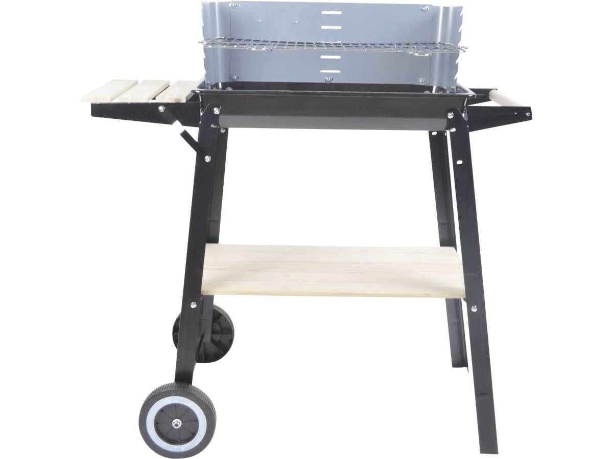 Descriptif:Barbecue charbon de bois - En acier - 84x 44 x 86 cm - 1 poignée - Grille de cuisson en acier chromé - Grille de support - 2 roues de déplacement - Noir.Surface de cuisson:Grille : 48.5 x 28.5 x 0.6 cm.Système d'allumage:Charbon ou bois.Plus produit:- Grande surface de cuisson - Barbecue léger - 2 Roues de déplacement - 1 poignée - 1 tablette bois latérale et 1 tablette bois inférieure.Option: .Poids du colis:7.5kgs.Colisage:1 colis : - 0,38 x 0,155 x 0,71 m, 7,75 kg.