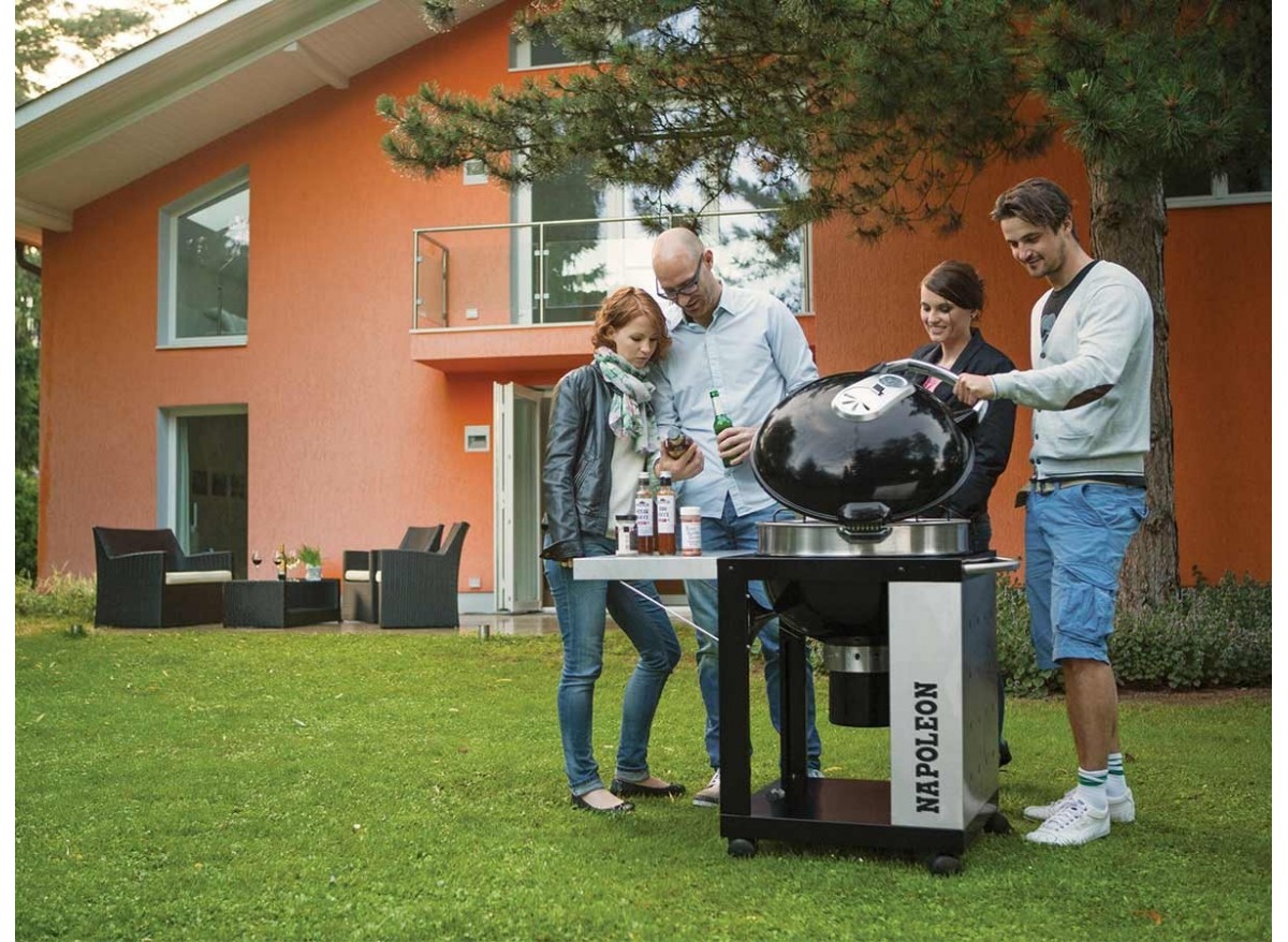 Barbecue à charbon Napoléon Rodéo Pro sur chariot Ø 57 cm Redécouvrez le plaisir de griller avec le barbecue à charbon Napoléon Rodéo Ø 57, conçu pour vous faciliter la vie. Son couvercle avec charnière assure une ouverture avec déviation sur le côté permet un accès au gril en gardant les mains éloignées de la source de chaleur. La grille du barbecue possède les rabats réglables à 3 niveaux pour cuisiner avec des températures différentes. Le barbecue à charbon Napoléon Rodéo Pro est également doté d'un diffuseur de chaleur en acier inoxydable qui crée une circulation d'air autour du charbon pour une chaleur homogène et une combustion optimale dans la cuve. - Dimensions du barbecue avec tablette dépliée (L x l x H) : 113,50 x 72,50 x 106 cm - Longueur avec tablette repliée : 79 cm - Hauteur couvercle ouvert : 152 cm - Dimensions de la grille de cuisson : Ø 57 cm - Grille Wave™ en fonte émaillé - Thermomètre et ventilation inoxydable ACCU-PROBE™ - Grille, rabattable et hauteur ajustable sur 3 niveaux - Couvercle et cuve robustes porcelaine émaillée - Vannes de ventilations améliorées en acier inoxydable - Grand récipient à cendres amovible et robuste - Chariot solide avec tablette rabattable - Grandes roues robustes - Pour 12 personnes Caractéristiques techniques Collection:Rodéo Pro Convient pour:10 à 12 personnes Couleur:Noir Crochet(s) porte-accessoires:Non Cuve:Porcelaine émaillée Dimensions (L x l x H):113,50 x 72,50 x 106 cm Dimensions colis (L x l x H):72 x 67 x 50 cm Forme:Rond Foyer vertical:Non Garantie:10 ans Grille:Fonte émaillée Grille d'attente:Non Marque:NAPOLÉON Matière(s):Acier Poids:43 kg Récupérateur de cendres:Oui Réglage hauteur de grille:Oui Roulettes de déplacement:Oui Surface de cuisson:Ø 57 cm Système d'allumage rapide:Non Tablette(s) latérale(s):Oui