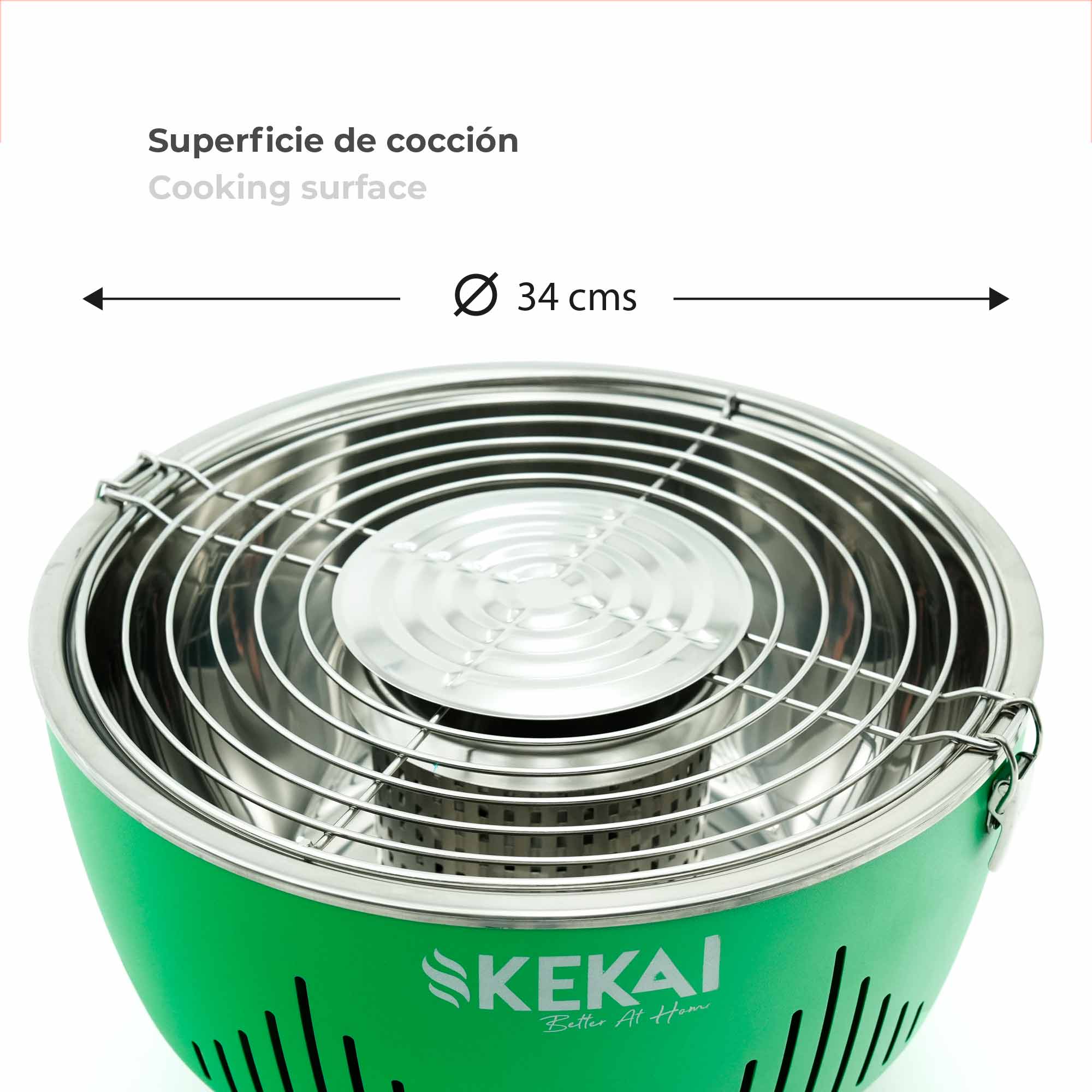 Passer le carrousel d'imagesDécouvrez la nouvelle génération de barbecues au charbon de bois avec Kekai. Des matériaux de haute qualité et de grandes possibilités font de ces barbecues portables un outil indispensable pour tous les passionnés de la gastronomie. Le modèle Crater est doté d'un système de récupération afin que les graisses dégagées par les aliments n'atteignent pas le charbon de bois, évitant ainsi l'ennuyeuse fumée noire et, par conséquent, il peut être utilisé partout. Il intègre également un ventilateur à batterie qui souffle de l'air froid sur le charbon de bois, ce qui accélère les braises et le barbecue est prêt en quelques minutes. Sa taille compacte vous permet de placer ce grill portable sur une table sans problème, et il est très sûr : il dispose d'une poignée de sécurité intégrée et d'un système de verrouillage qui l'empêche de bouger lors de son transport. Retrouvez le goût authentique du grill grâce à Kekai ! Caractéristiques : - Dimensions : 35x35x25 cm. - Poids : 4 Kg. - Matériau : acier inoxydable. - Couleur : vert. - Fonctions : Régulation de l'air. - Finition : revêtement en poudre. Lavable au lave-vaisselle. - Carburant : charbon de bois. - Équipement : grille de barbecue et bol à graisse. - Spécifications : Plateau de table. Pièces amovibles pour le nettoyage - Pile : 4 piles AA (non incluses).