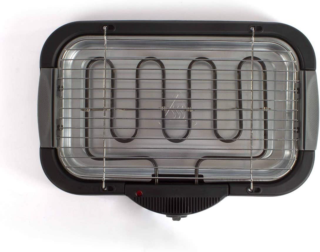 Surface de cuisson 40 x 23,5 cm. Puissance 2000 W. Thermostat et résistance amovibles. Témoin lumineux de fonctionnement. Bac récupérateur de graisses amovible en aluminium. Entièrement démontable pour un nettoyage facile. Grille de cuisson chromée amovible et réglable en hauteur. 4 pieds antidérapants. Utilisation exclusivement en intérieur