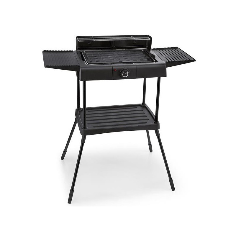 ksbbq1703 - barbecue électrique sur pieds 2000w noir - Kitchen Studio Barbecue électrique sur pieds KitchenChef KSBBQ1703 idéal pour réaliser des grillades toutel l'année ! Appareil qui combine 2 utilisations : Barbecue sur pied pour une utilisation intérieure et extérieure ou barbecue sur table. Capacité : 6 à 8 convives grace à une surface de cuisson de 1092 cm2 (surface de cuisson 42 x 26cm). Pratique : Plaque de cuisson amovible facilement démontable ainsi que le bac récupérateur de jus et la résistance, pour un nettoyage aisé. L'appareil se démonte complètement pour faciliter son rangement. Qualité : Plaque de cuisson en fonte d'aluminium revêtue antiadhésive. La résistance de chauffe s'encastre parfaitement dans la plaque afin d'optimiser la diffusion de la chaleur. Sécurité : 4 pieds stables maintenus par le plateau support accessoires et condiments.