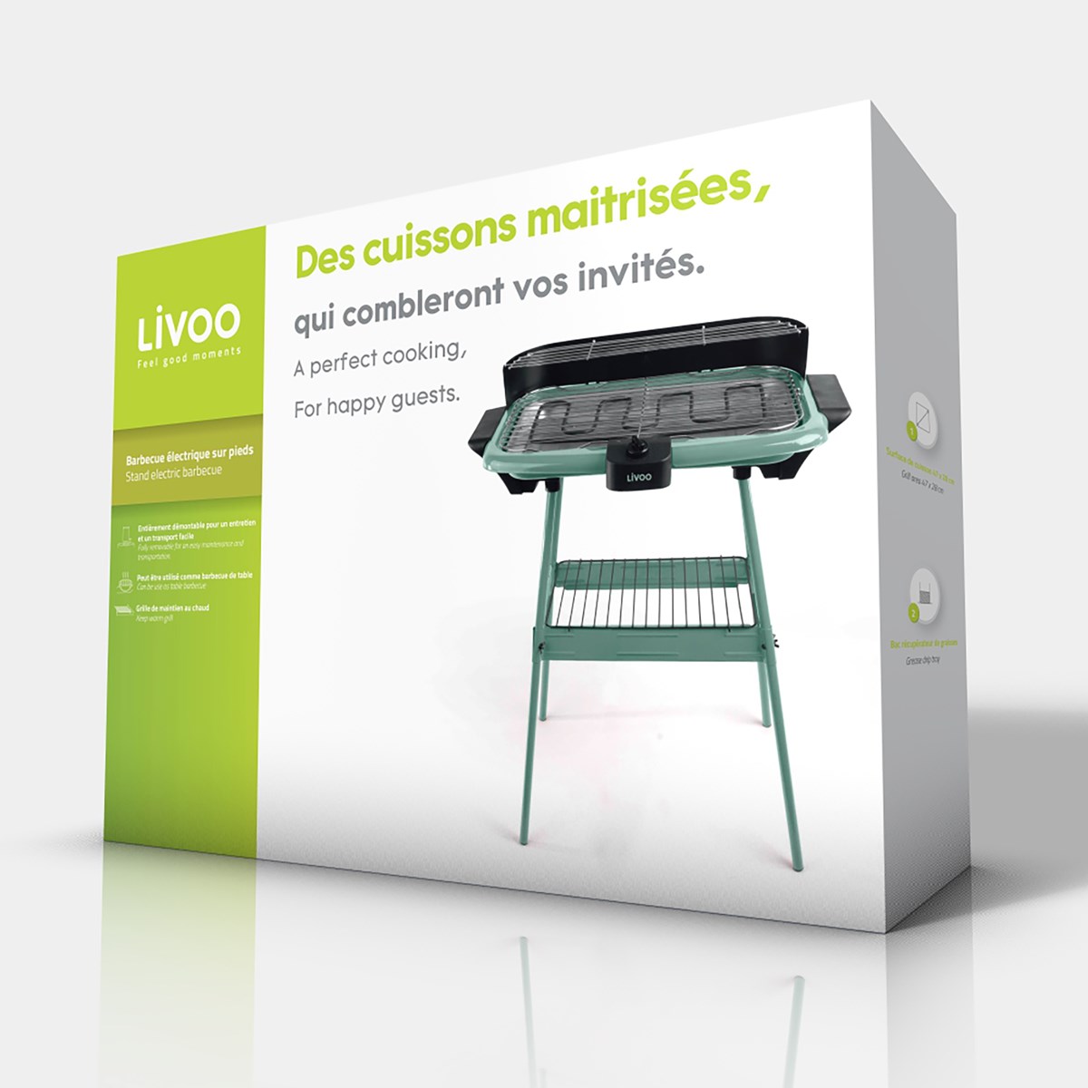 dom297ve - barbecue électrique sur pieds 2000w vert - Le barbecue électrique sur pieds DOM297VE de Livoo peut être utilisé comme barbecue de table !