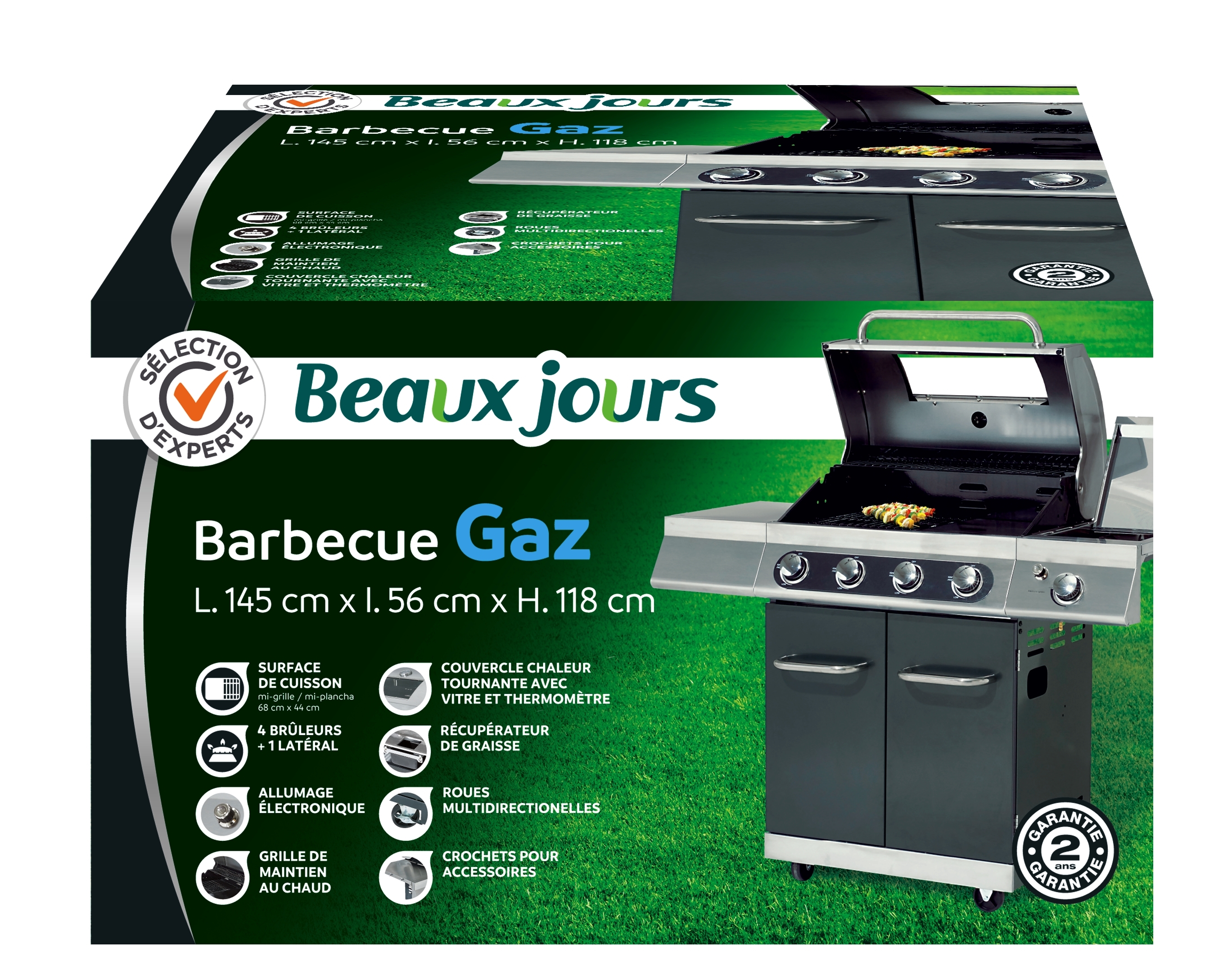 Libellé Barbecue Gaz 4 brûleurs et une plancha Beaux Jours