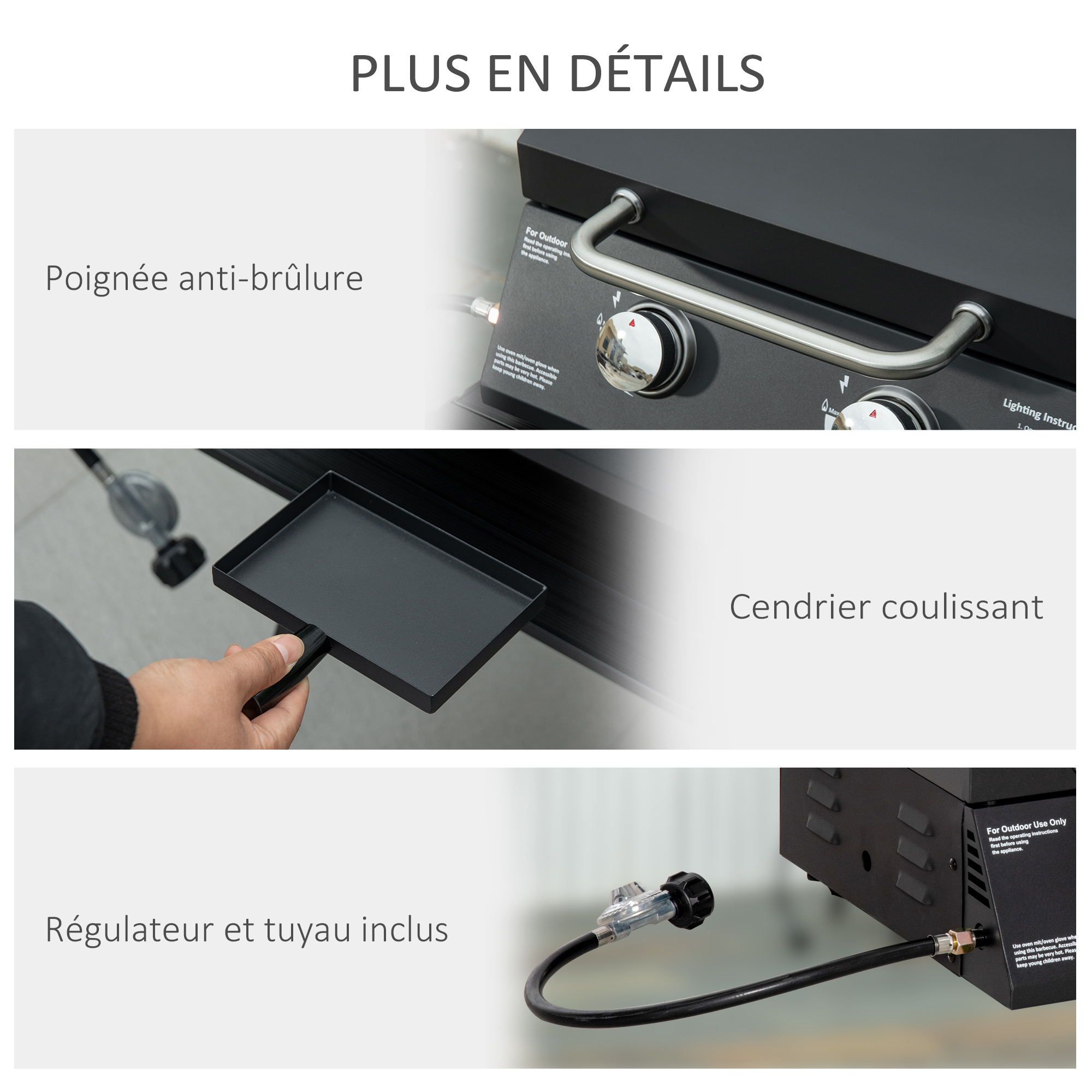 | Libellé | Barbecue gaz de table transportable pieds pliables - 2 brûleurs 5 kW - barbecue gaz de camping - grille de cuisson, réceptacle graisse, thermomètre - |