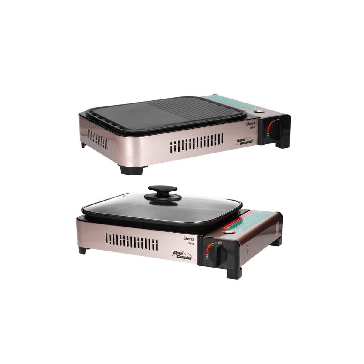 Barbecue grill Plancha gaz 2100W + Mijoteuse 2en1 ALPEN Piezo Haute Qualité + Mallette de transport