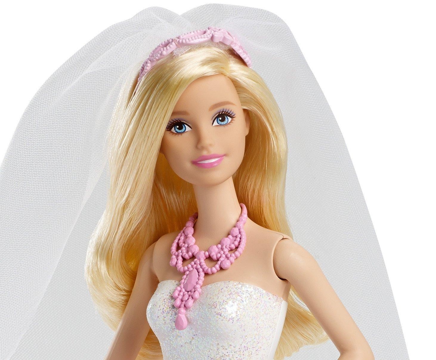 Que ce soir dans un château du royaume enchanté ou dans une jolie clairière en famille, les mariages sont toujours magnifiques! Barbie s'est faite la plus belle pour ce jour et elle est prête à vivre une histoire fabuleuse. Inclut une poupée Barbie en robe de mariée et ses accessoires, dont un serre-tête avec voile, un collier, des chaussures et un bouquet qui tient dans sa main. Dans cette tenue raffinée, Barbie est absolument splendide!