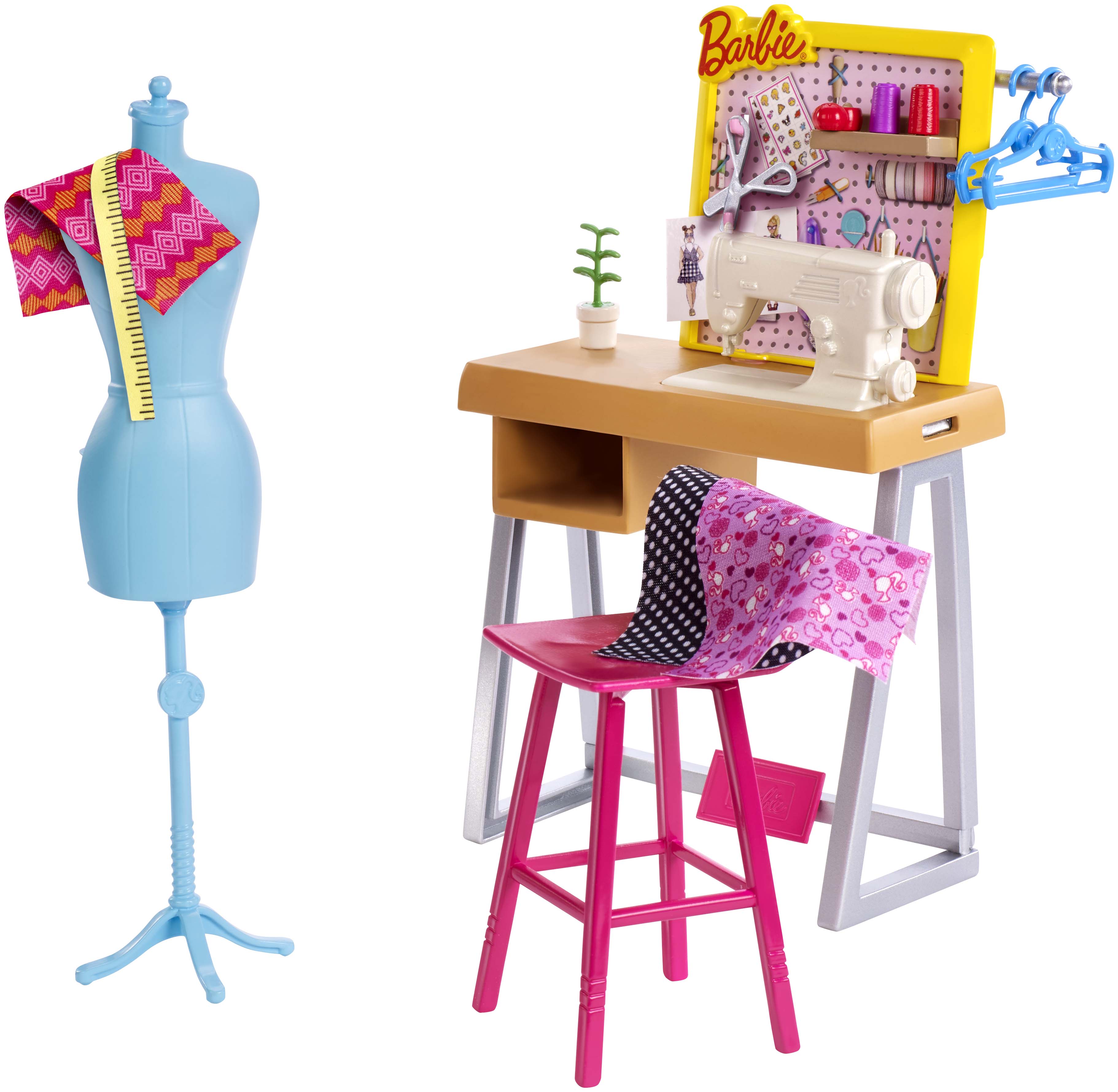 Les coffrets Barbie Métiers permettent de découvrir un métier tout en samusant. Cet atelier de mode inspire limagination avec sa table équipée dune machine à coudre, son étagère à accessoires et son panneau avec crochets pour y fixer les éléments plus petits. Les stylistes en herbe peuvent créer toute une histoire sur le thème de la mode en saidant du mannequin, des 3 morceaux de tissu et des accessoires, tels quune paire de ciseaux, des bobines de fil ou des cintres. Poupée non incluse.