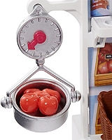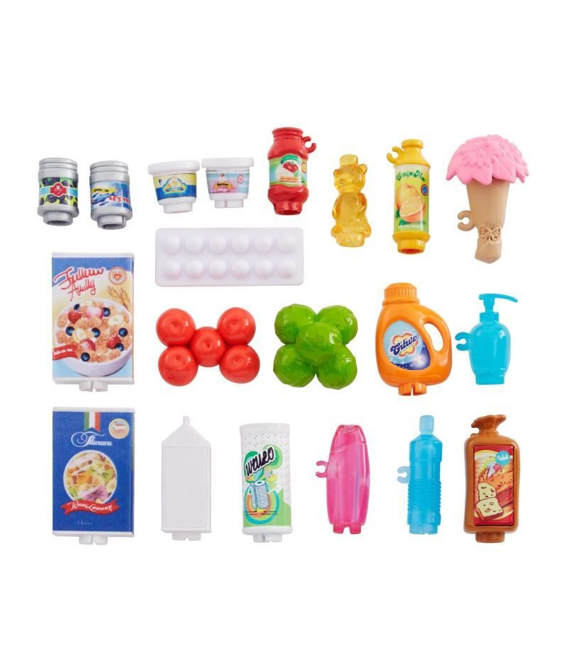 Le coffret épicerie Barbie contient tout ce qu'il faut pour jouer à faire ses courses au supermarché! Aidez Barbie à attraper le caddie ; celui-ci roule vraiment! Parcourez le présentoir. Il y a même une balance qui bouge! Une fois le caddie rempli, passez à la caisse. Déposez les produits sur le tapis roulant. Faites glisser le levier et observez vos achats tomber dans le sac. Inclut une poupée, un comptoir-caisse & tapis roulant, un présentoir, un caddie, un sac de course et des produits.