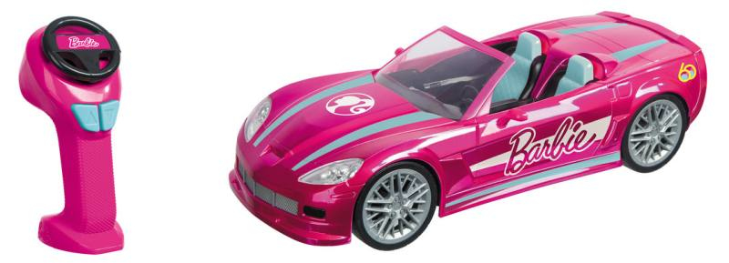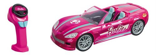Cabriolet radiocommandé Barbie Dream Car. 43 cm, toutes directions, 2,4GHz, 8 km/h, phares lumineux. Peut accueillir 2 poupées Barbie (non incluses).
