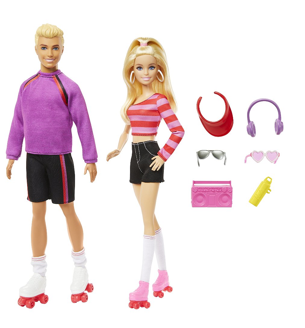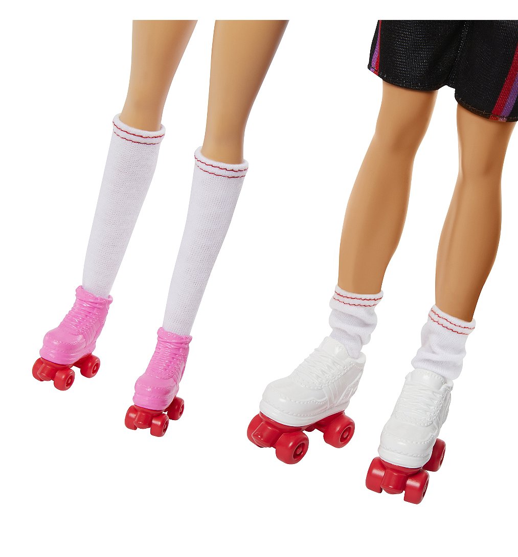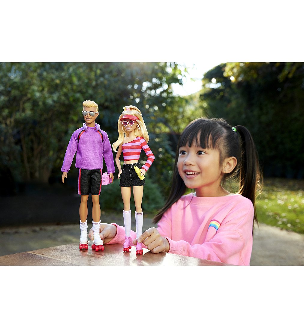 | La boîte contient | Inclut 1 poupée Barbie avec un haut, un short, des boucles d’oreilles et des patins à roulettes ; 1 poupée Ken avec un haut, un short et des patins à roulettes ; plus 6 accessoires. Les poupées ne peuvent pas tenir debout ou faire du patin à roulettes toutes seules. Les couleurs et les décorations peuvent varier. |