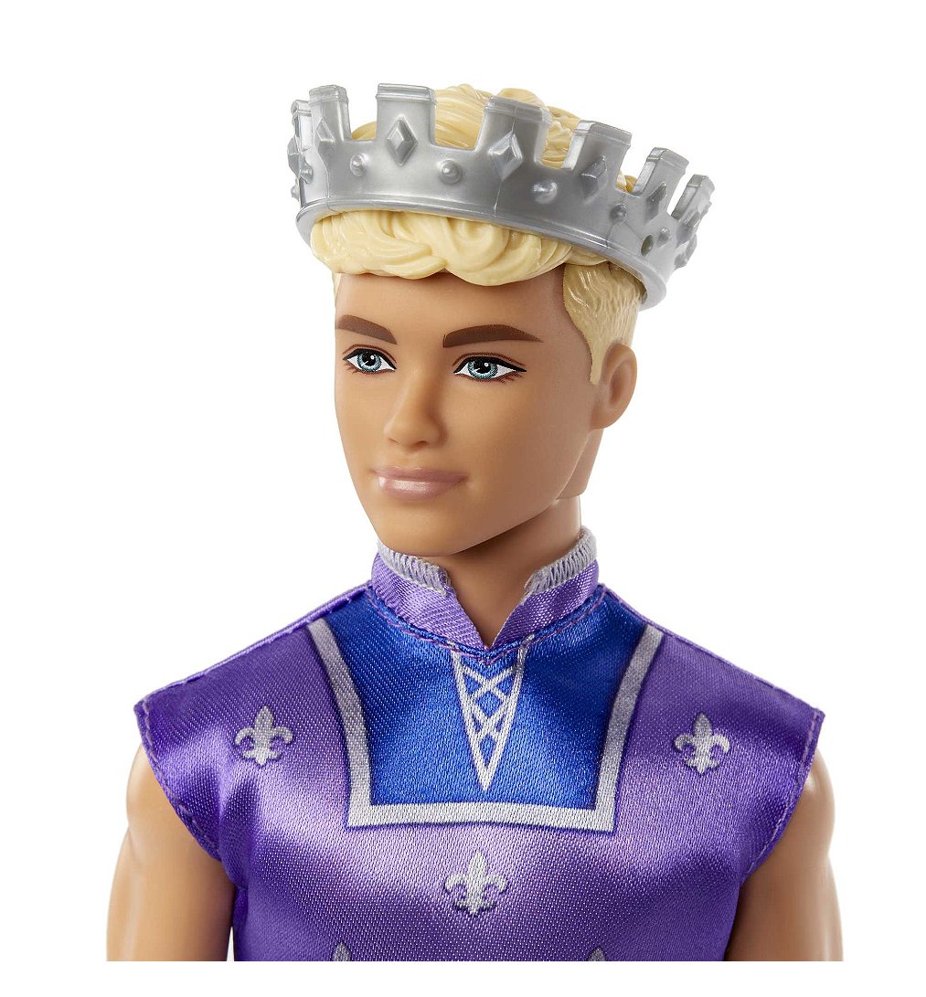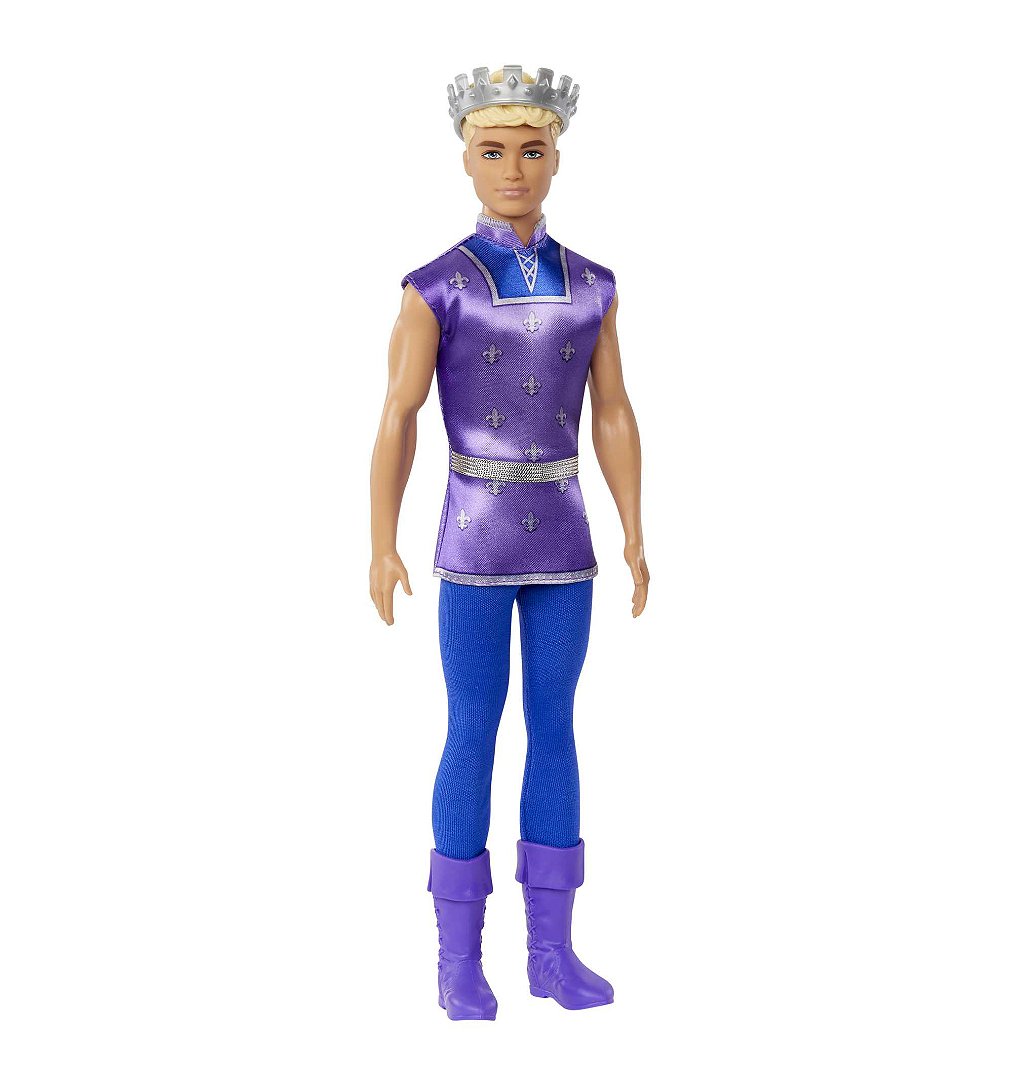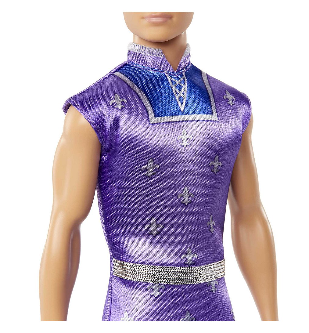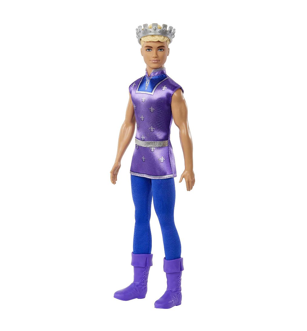 Plus produit Il ny a jamais assez de rois, de reines, de princes et de princesses dans le royaume féerique de Barbie® ! Cette collection comprend des poupées Ken® de la lignée royale pour inspirer des histoires en tous genres.\nCette poupée Ken® porte une tunique royale violette et des bottes de cavalier assorties !\nUne couronne argentée et un legging bleu complètent sa tenue de prince. Avec un tel prince charmant pour personnage principal, les enfants nauront aucun mal à imaginer leurs propres contes de fées ! \nQue ce soit avec son cheval ou dautres créatures fantastiques, Ken® est prêt à partir à laventure !\nLes poupées Ken® Prince compléteront à merveille toute collection Barbie®. Les enfants peuvent découvrir dautres poupées et coffrets pour encore plus dhistoires à inventer dans le monde merveilleux de Barbie® !