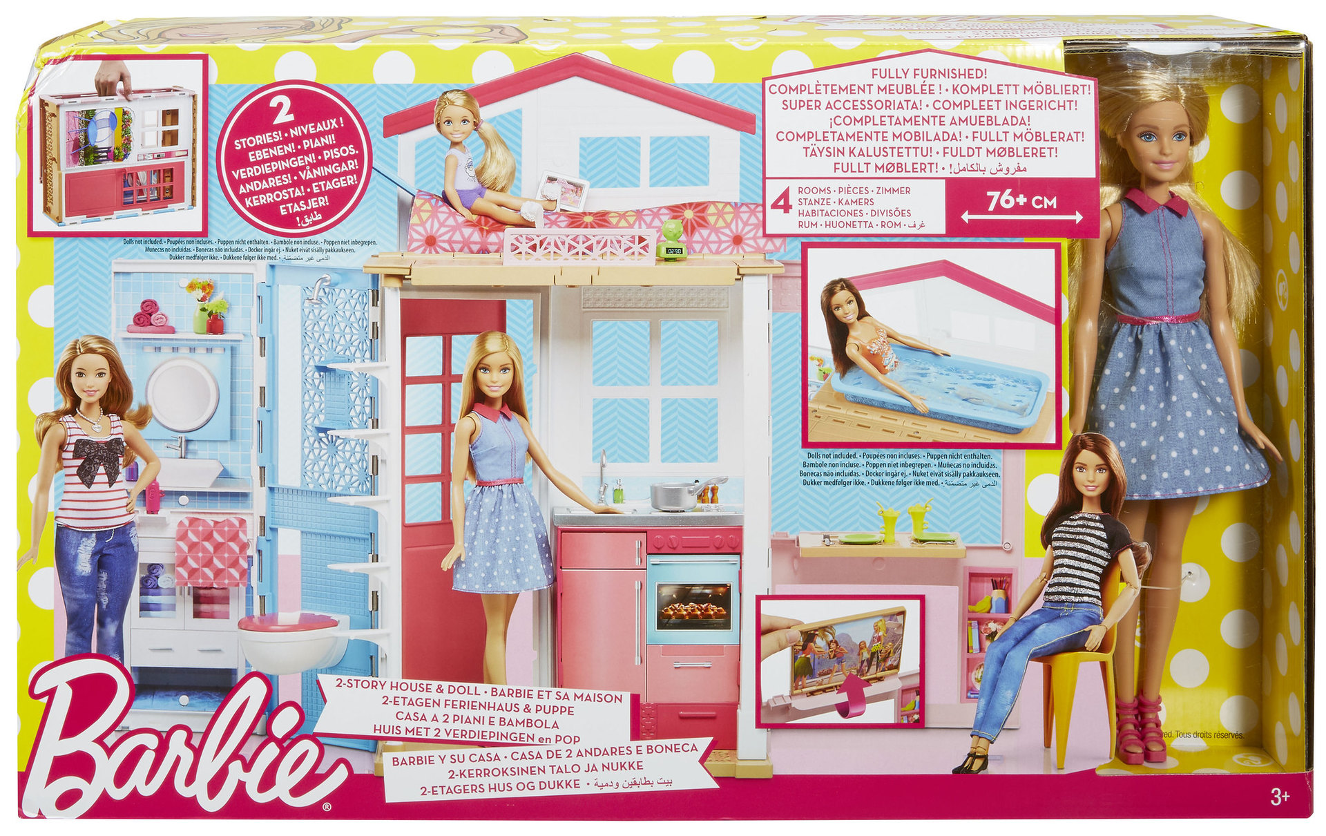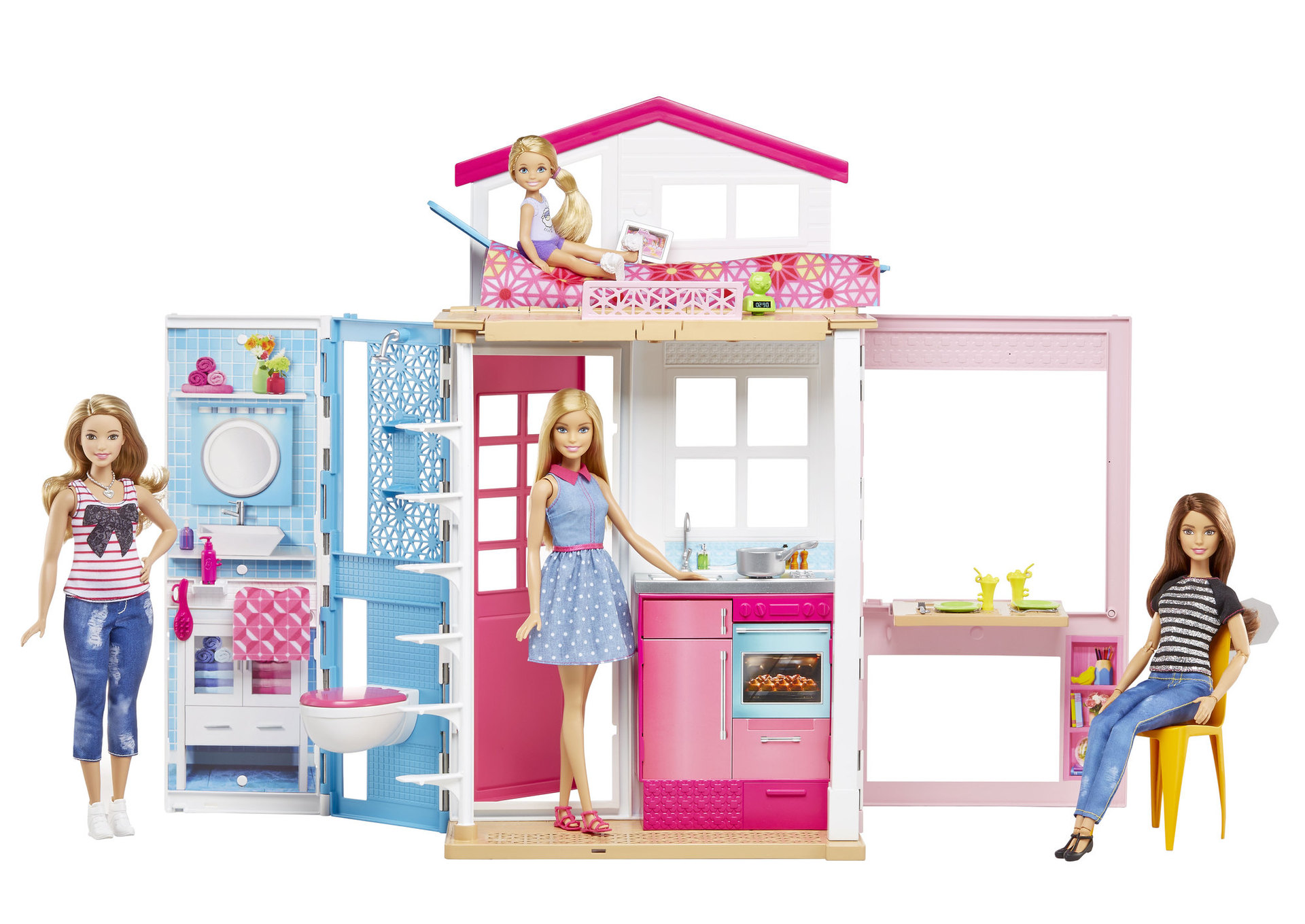 Une maison nomade avec une poupée Barbie inclue à emporter pour jouer. Jolie et pratique, la maison se replie pour un gain de place et contient quatre espaces de jeu accessoirisés avec la chambre située au premier étage. Ce coffret d'accessoires offre tout le confort intérieur pour mettre en situation la poupée.