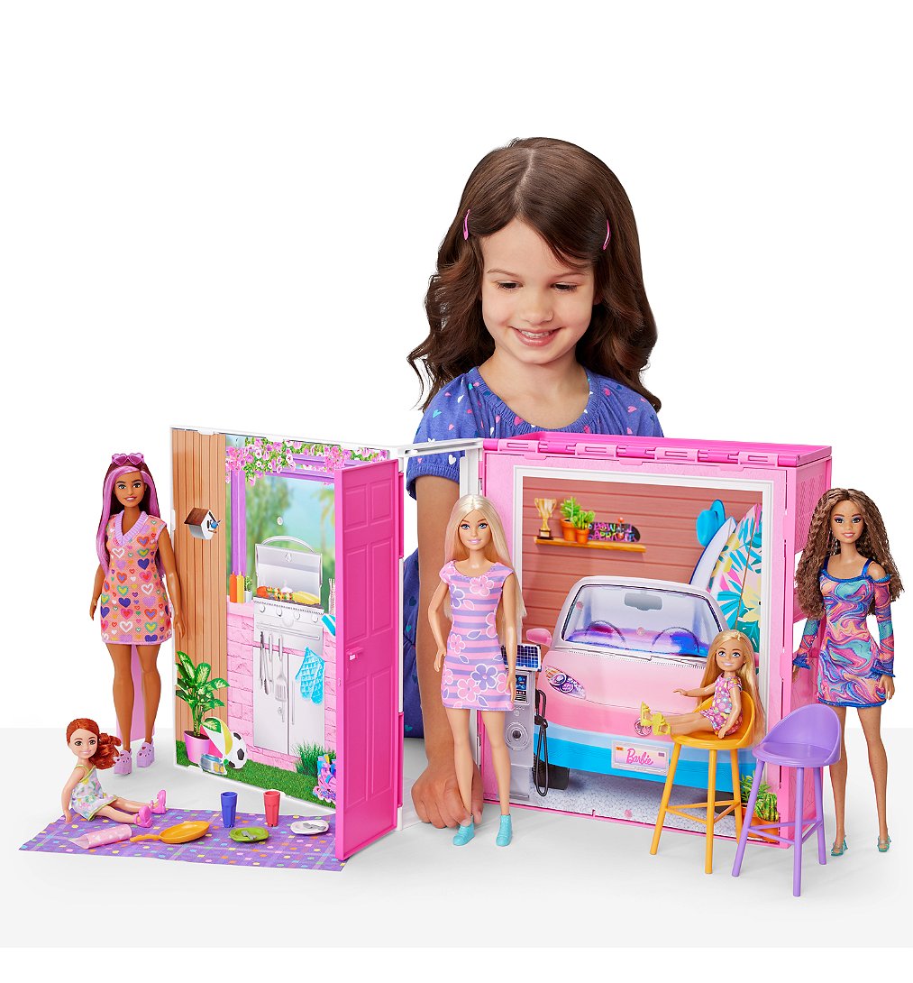 barbie-maison de vacances-coffret et poupée, 4 zones et 11 accessoires