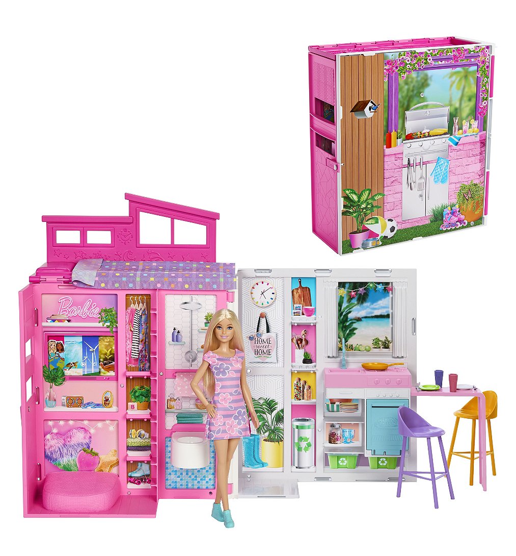 La boîte contient Inclut 1 maison Barbie avec 1 poupée Barbie et 11 accessoires.