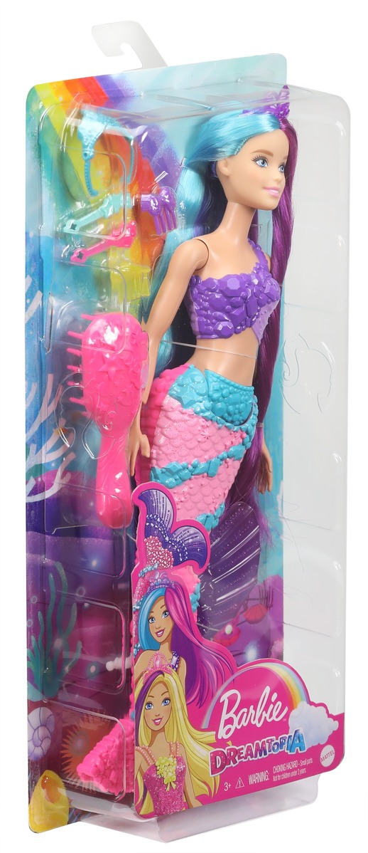 Une Barbie sirène aux cheveux fantastiques arrive dans le royaume de Dreamtopia. Cette sirène est une princesse aquatique. Sa queue de sirène ainsi que sa tenue sont recouvertes de pierres précieuses. Elle brillera devant son royaume et ses amis. Barbie adore aussi les couleurs. Ses longs cheveux sont bleus et violets. Votre enfant pourra lui faire les plus belles coiffures grâce à sa longue chevelure. Queue de cheval, tresses, couettes ou chignons, tout est possible grâce à sa longueur fantastique.