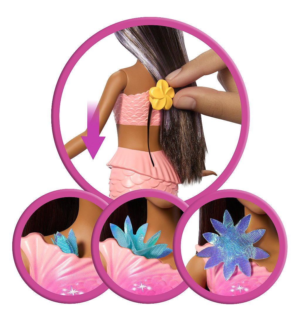 barbie-sirène fleur magique-poupée aux longs cheveux bruns