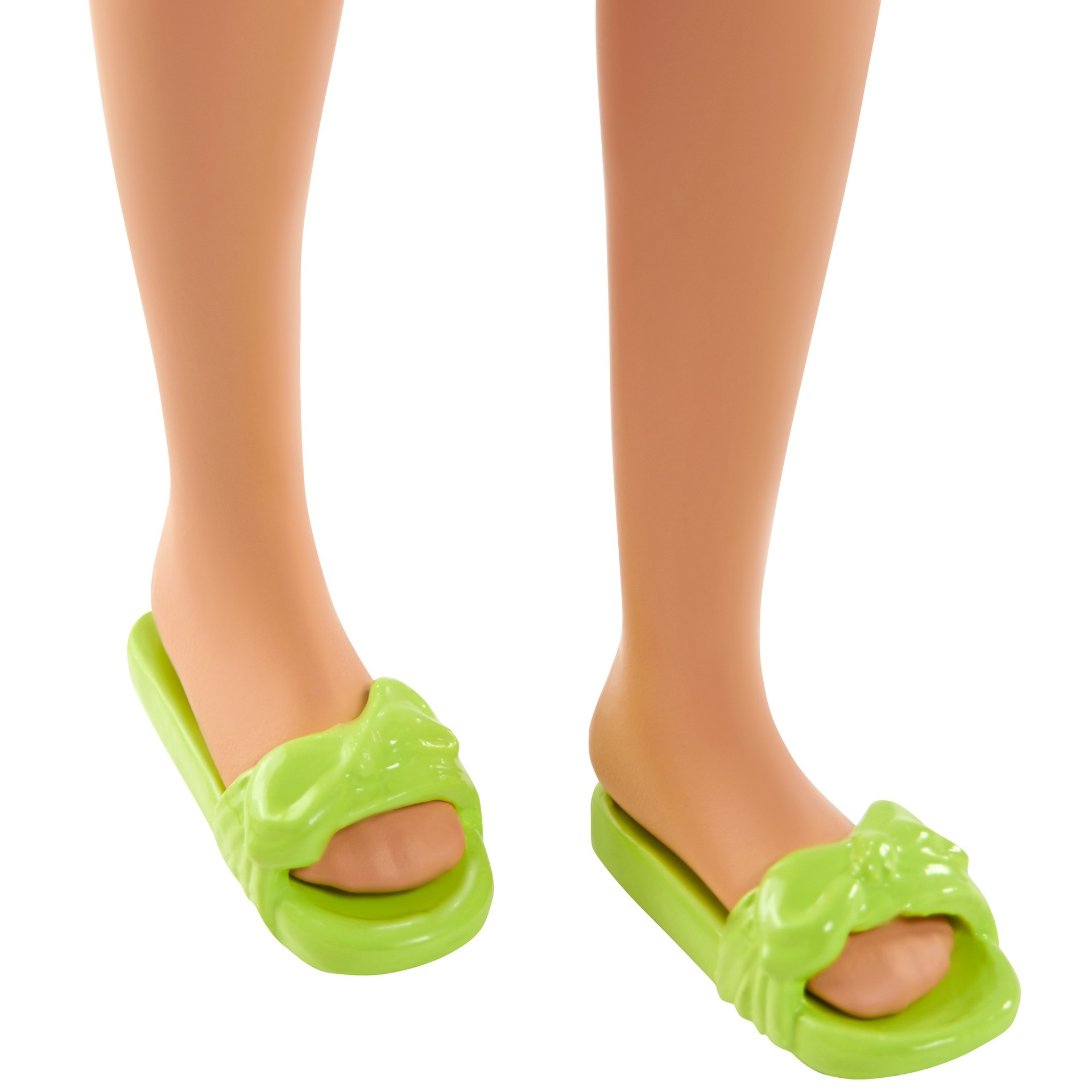 Les coffrets inspirés de Barbie et Chelsea : l'Anniversaire perdu, entraînent les enfants dans des aventures pleines de découverte et de copains animaux ! Stacie est prête à partir en voyage avec sa robe tendance à imprimé tropical. Les enfants pourront laider à faire rouler sa valise et arrivée à destination, à se mettre en maillot pour piquer une tête ! Le chiot inspirera aux enfants des histoires damitié pleines de tendresse, et le masque avec tuba agrémentera le séjour sur lîle.