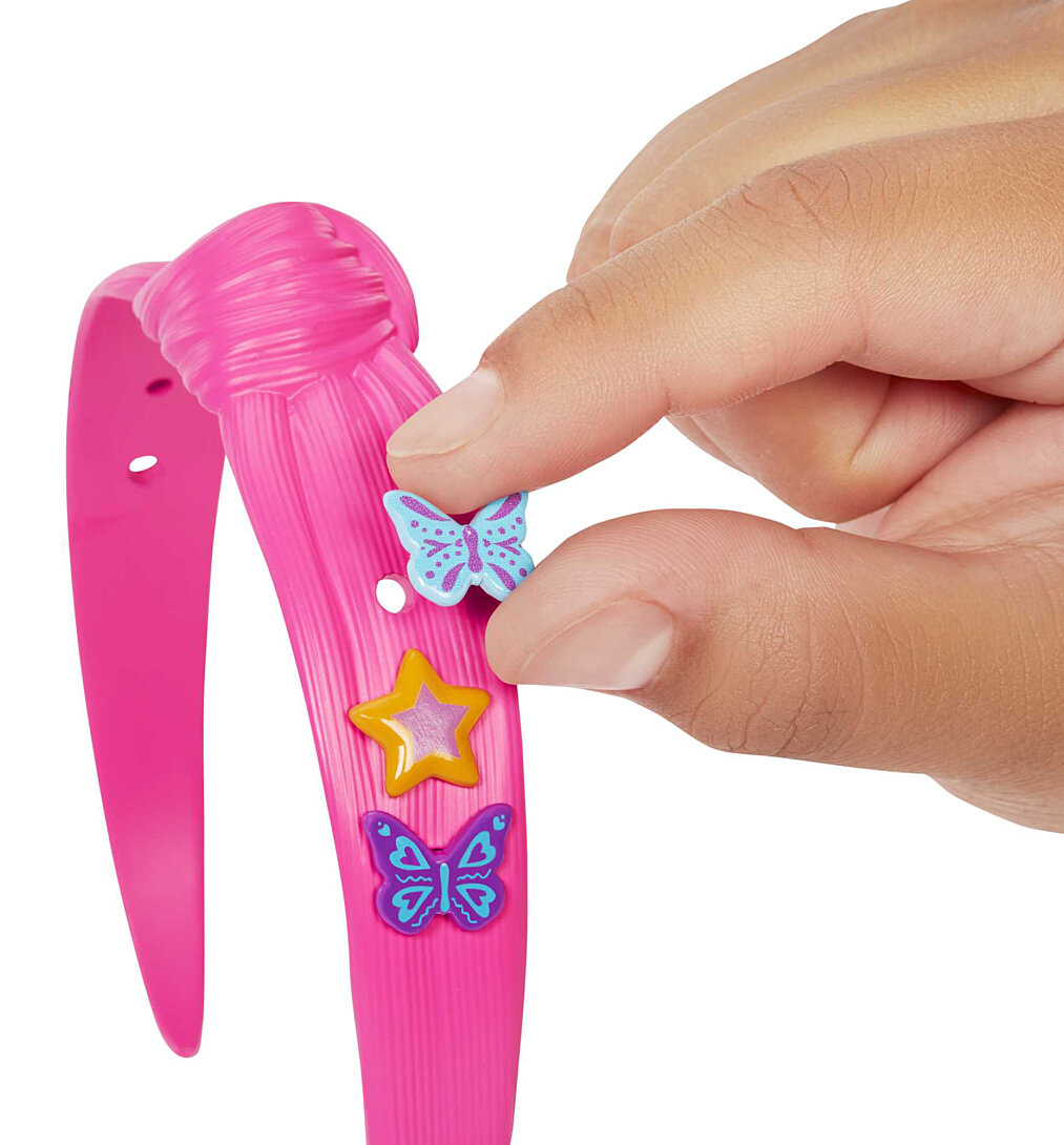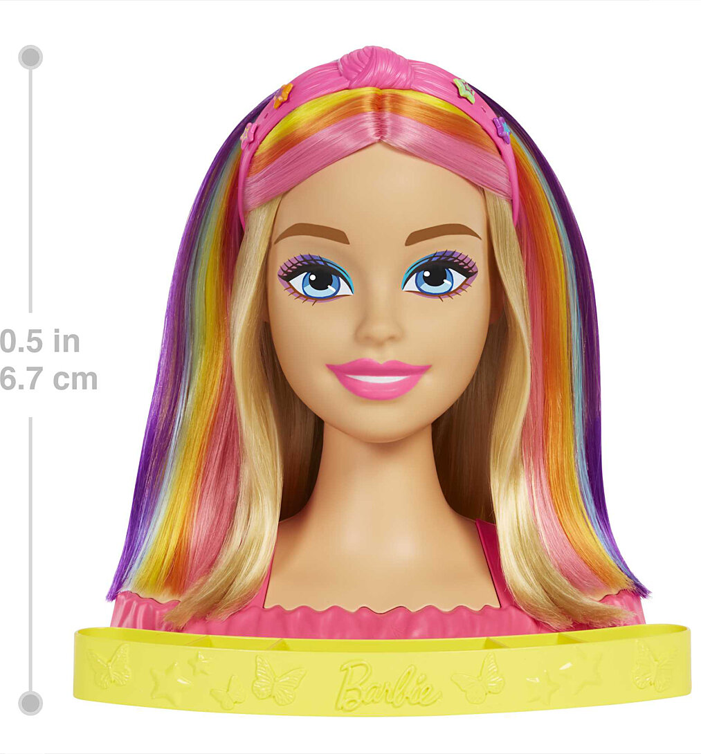 Pour créer des styles épatants avec la tête à coiffer de Barbie, rien n’est plus simple ! Il suffit d’utiliser les 23 accessoires de coiffure inclus.