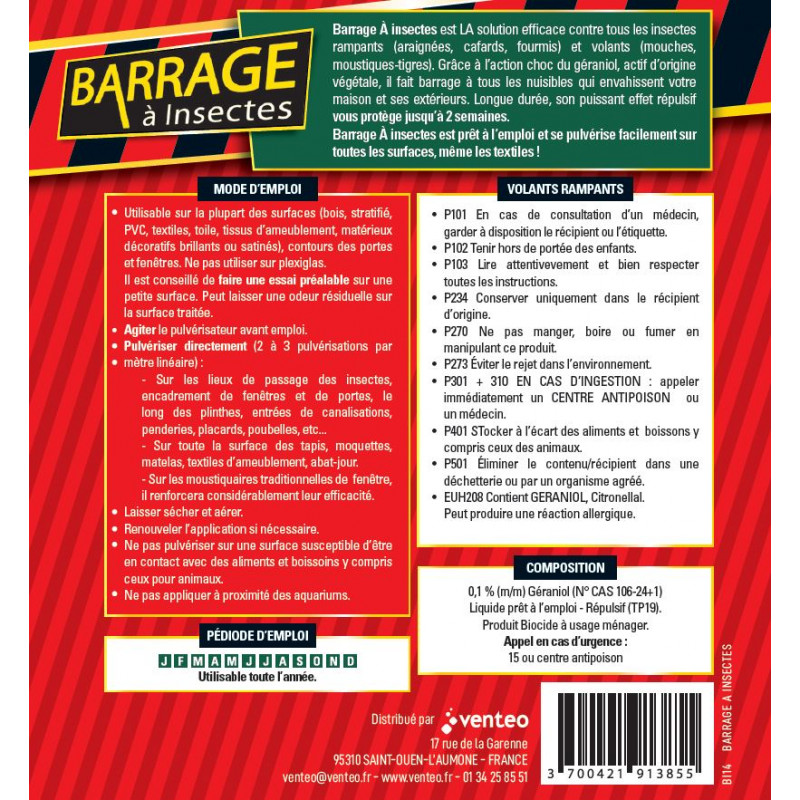 • ANTI-INSECTES : puissant répulsif anti-rampants et volants. Il agit également sur le moustique-tigre !