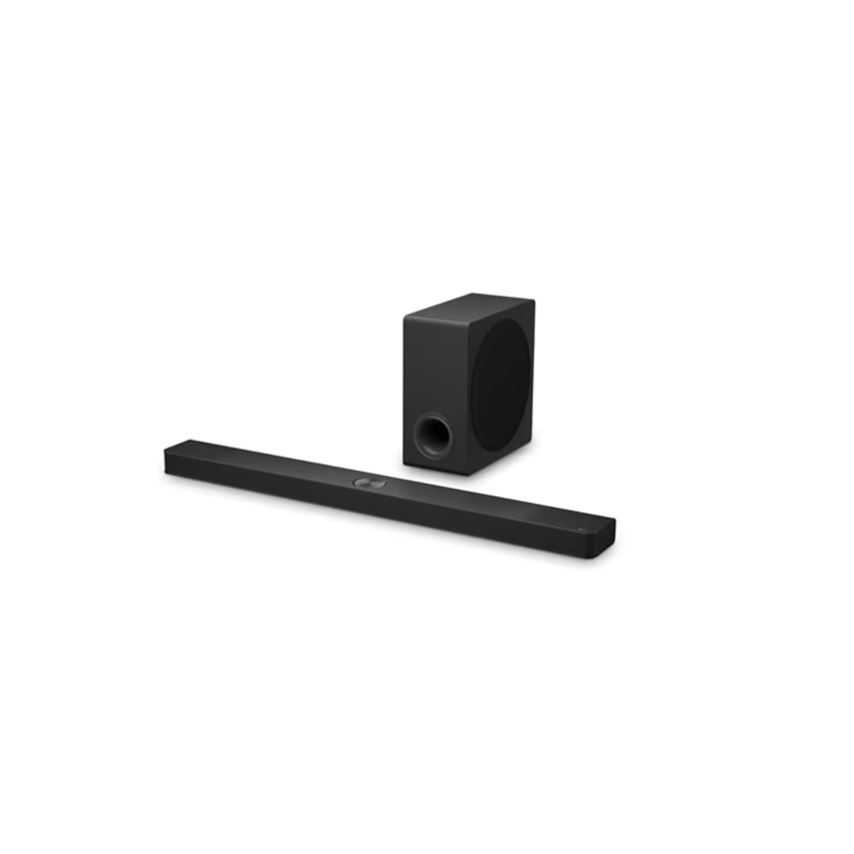 Audio 5.1.3 canaux, puissance de 570 W, trois hautparleurs verticaux sur la barre, un caisson de basses... La barre de son S90TY de LG est une solution complète qui diffuse un son puissant et immersif pour une expérience de