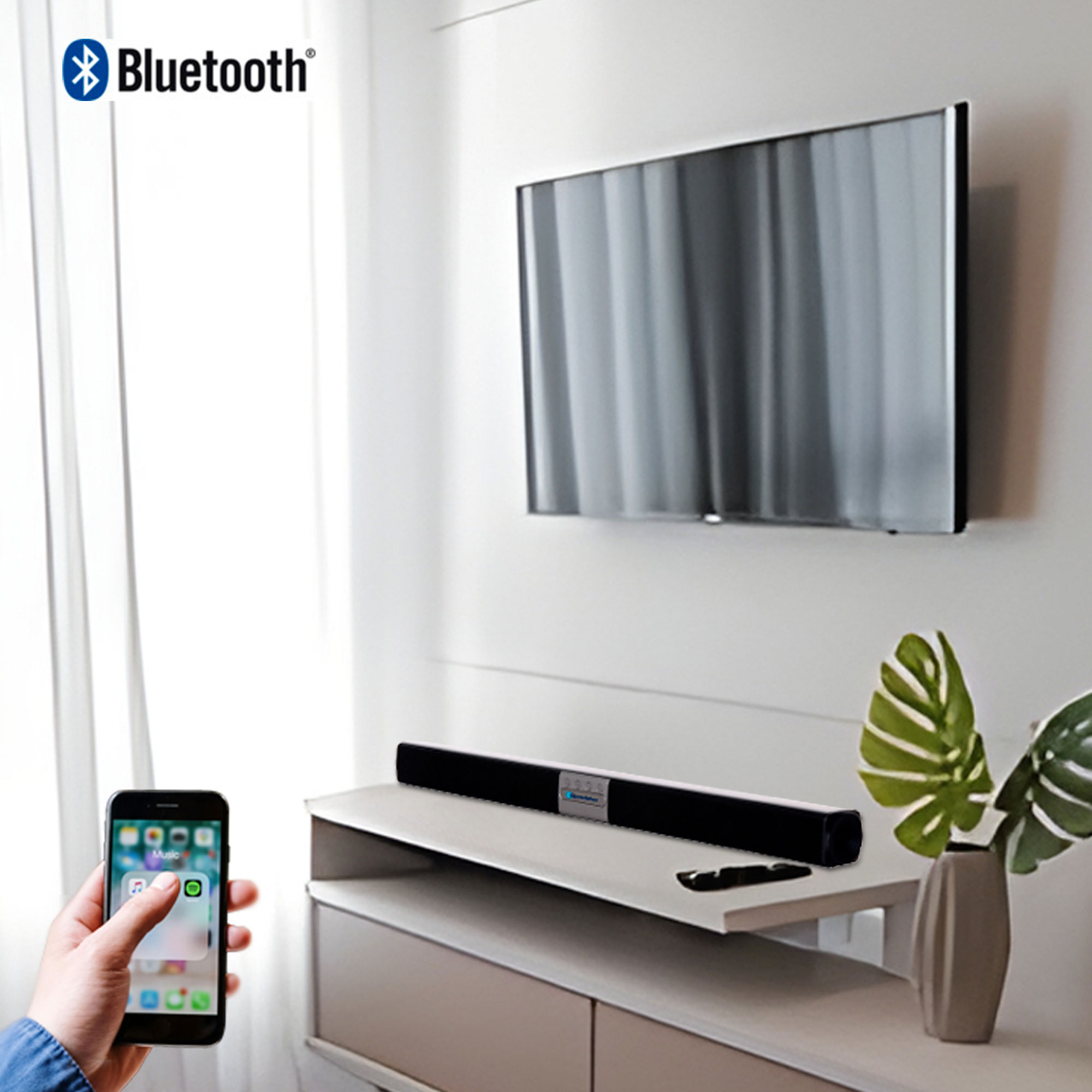 - Connectivité multiple: Transformez votre maison en cinéma avec une grande facilité. Vous pouvez connecter la barre de son à votre téléviseur ou PC via une connexion USB-C/TF, un câble coaxial RCA ou un câble jack Ø 3,5mm, en plus de la possibilité de la coupler à votre smart TV via Bluetooth.