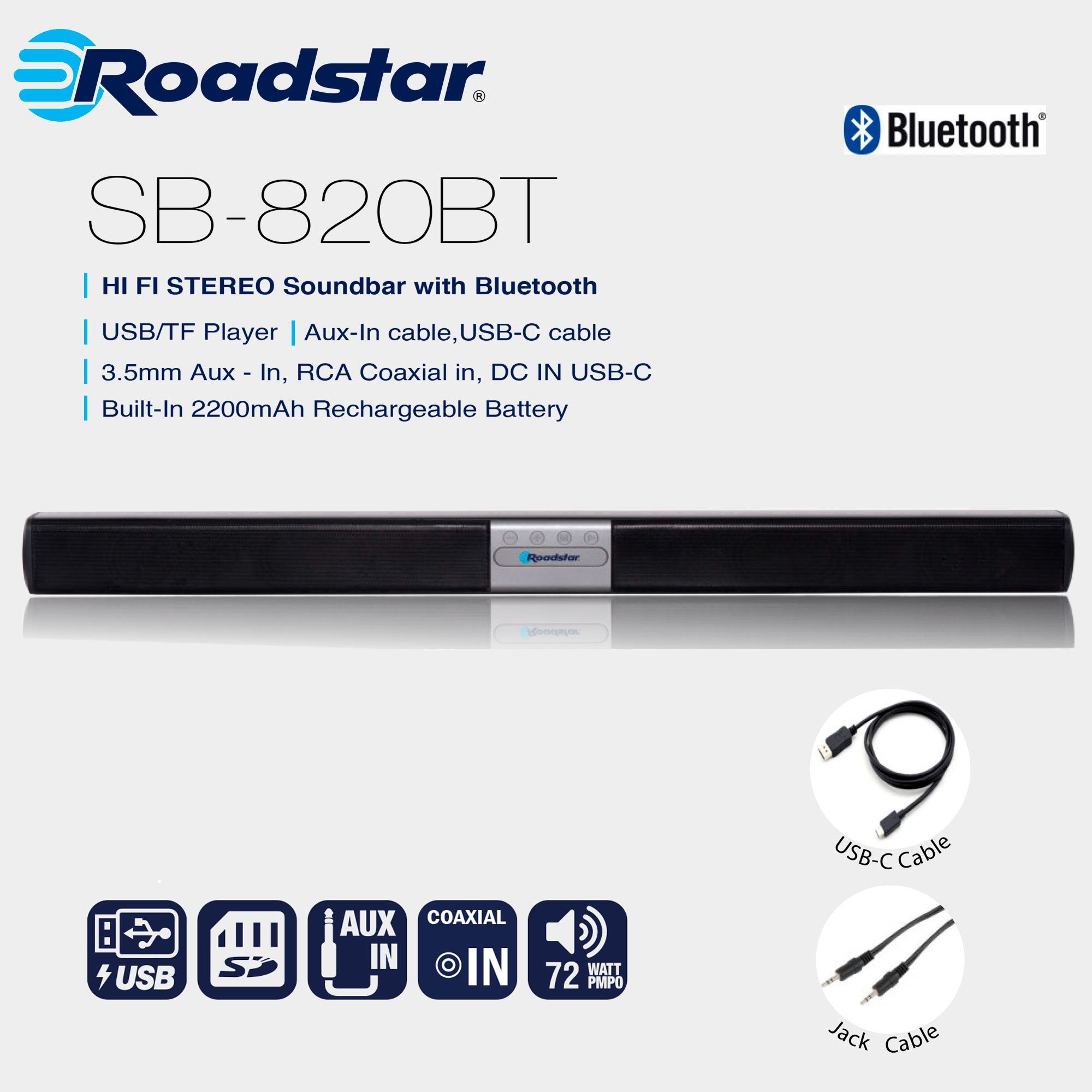 Barre de Son Bluetooth Soundbar HI FI pour Téléviseur ou PC, Haut-parleurs 72W 72 Noir RoadstarSB820BT