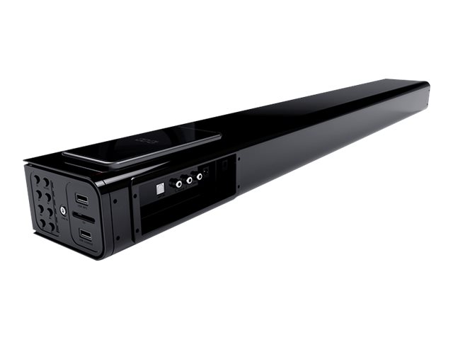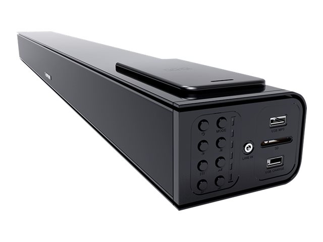 BARRE DE SON AVEC CHARGEUR DE SMARPTHONES PAR INDUCTION* SB160IBT THOMSON • Puissance musicale totale : 120 W • Système de sonorisation stéréo 2.0 • Bluetooth® : Écoutez vos musiques sans fil • Chargeur sans fil : technologie d’induction* • Entrée USB et carte SD pour lire vos fichiers MP3 • Port USB pour recharger vos appareils • Entrée 3.5mm pour brancher vos MP3 • Entrée RCA pour brancher vos appareils analogiques • Entrée Optique pour un son en qualité numérique • Télécommande • Alimentation de la barre : prise secteur 230V * Votre téléphone doit être compatible avec les chargeurs sans fil ou la technologie Qi.