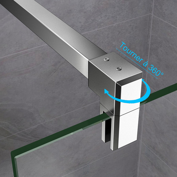 - Barre de fixation carrée - Fabriquée en aluminium, finition Chromé, adapter aux verres en 6-10mm d'épaisseur