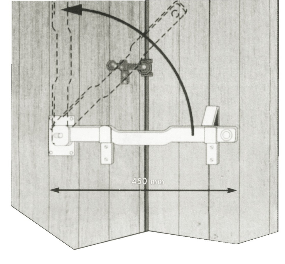 | Plus produit | Barre articulée de sécurité 450 mm avec blocage automatique, montage en applique sur deux battants, finition peinte claire, manipulation facilitée |